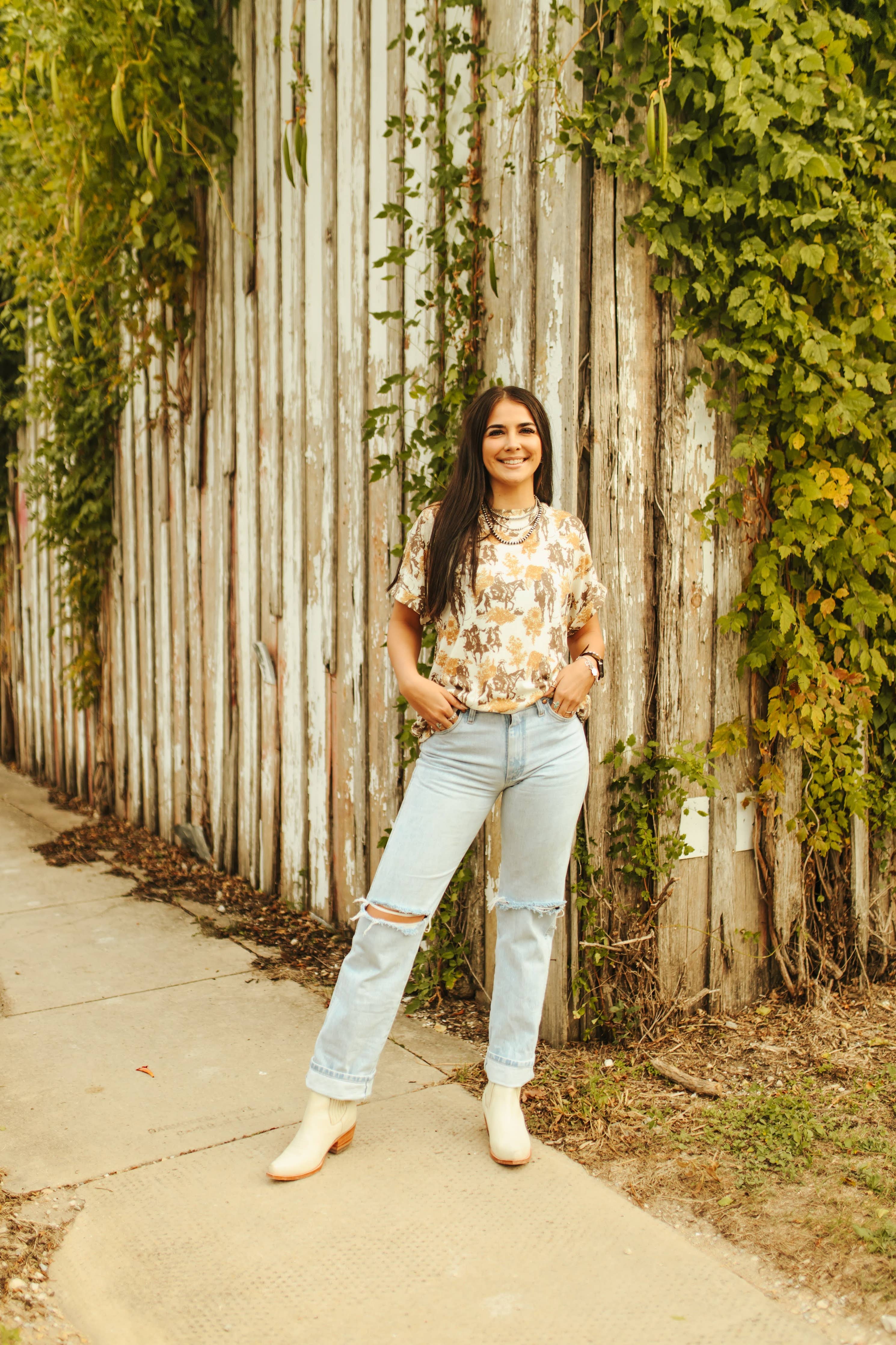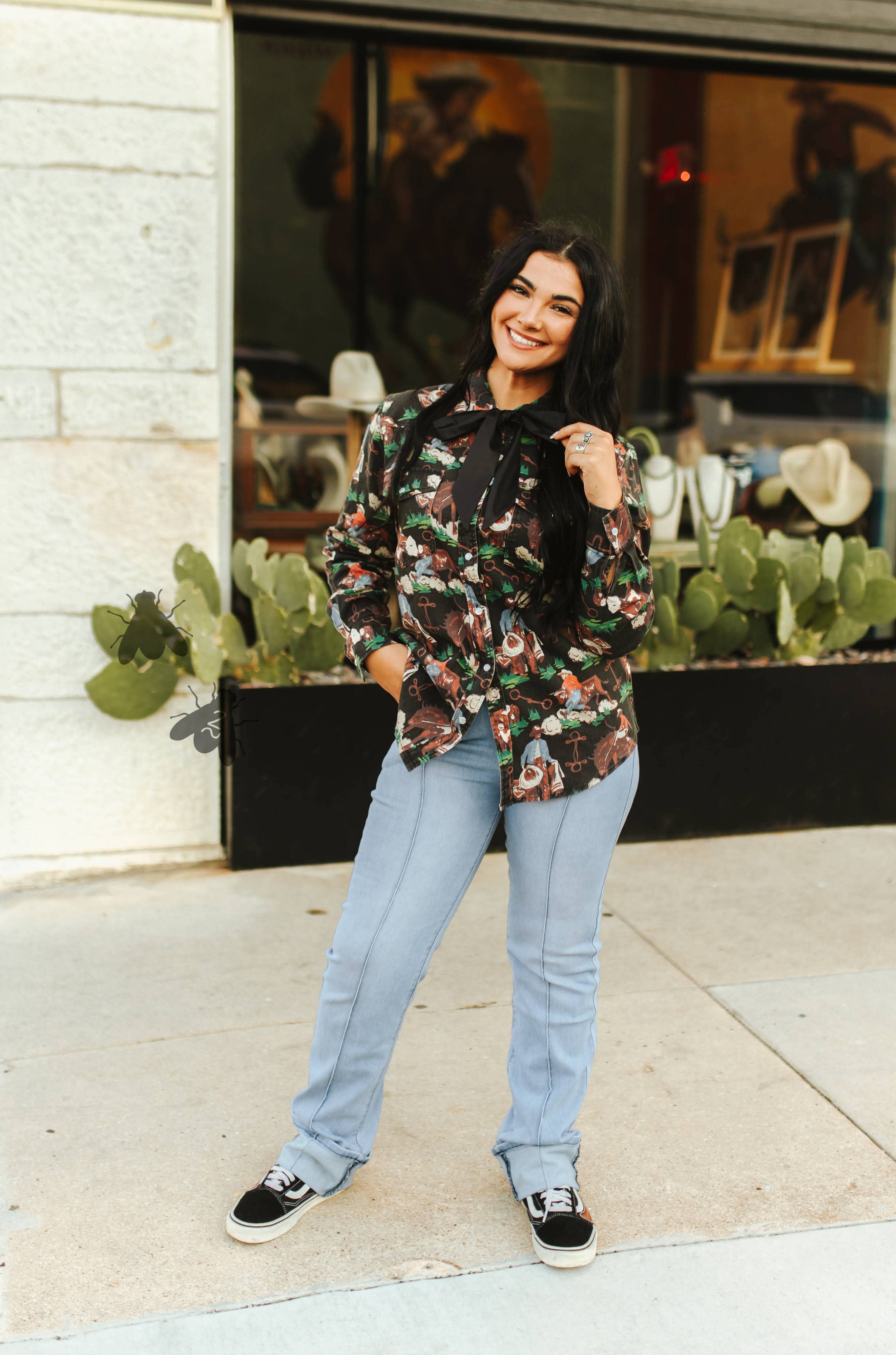 - How do I style a basic top for a Western look? A basic top is the perfect foundation for a Western outfit. You can pair it with a denim jacket and jeans, accessorize with a concho belt and turquoise jewelry, or layer it under a plaid shirt for a classic country look. Our long-sleeve ribbed tops are also great for layering under a vest.