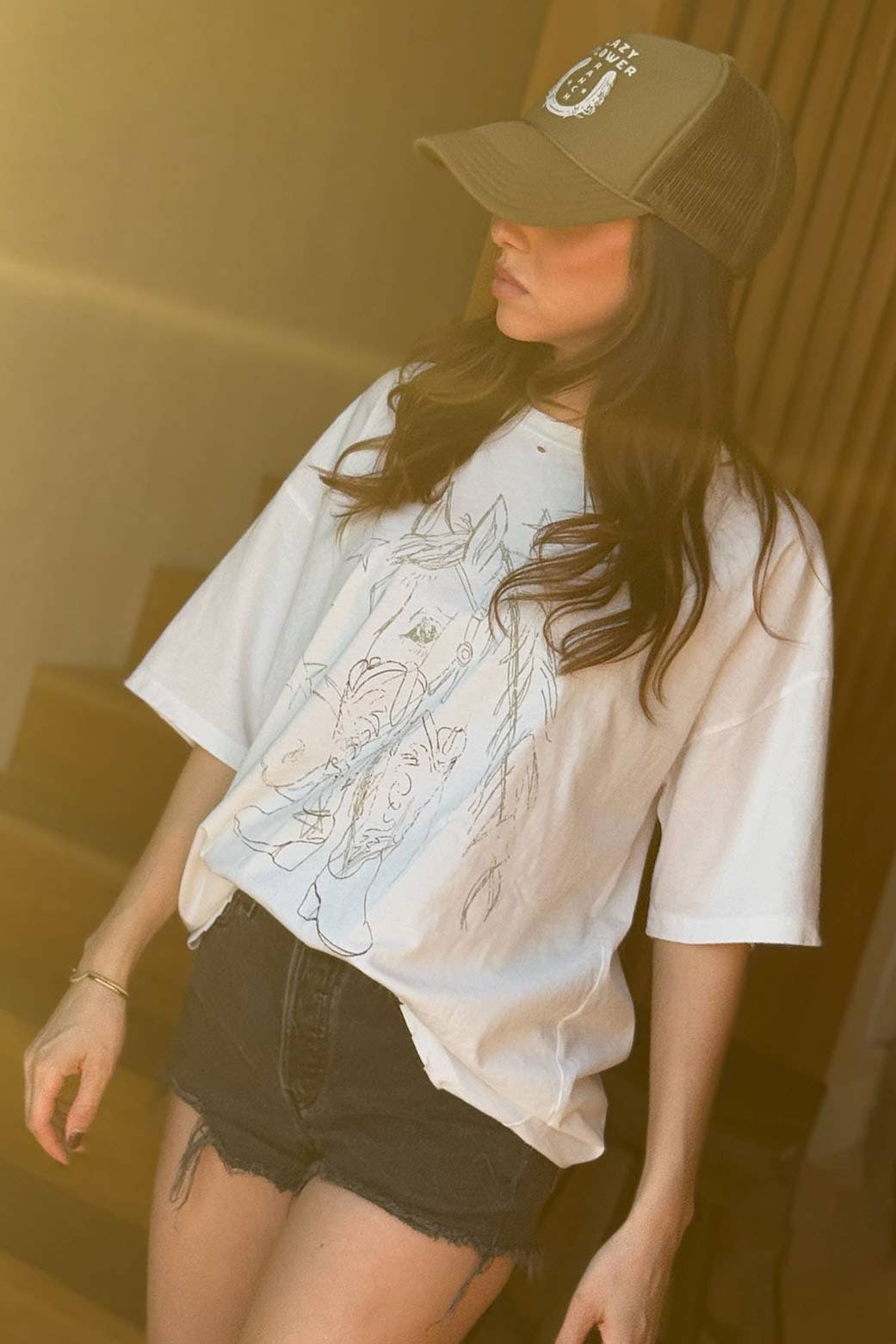 Rizzy Sketch Horse Cowboy Boots Oversized Graphic Tee