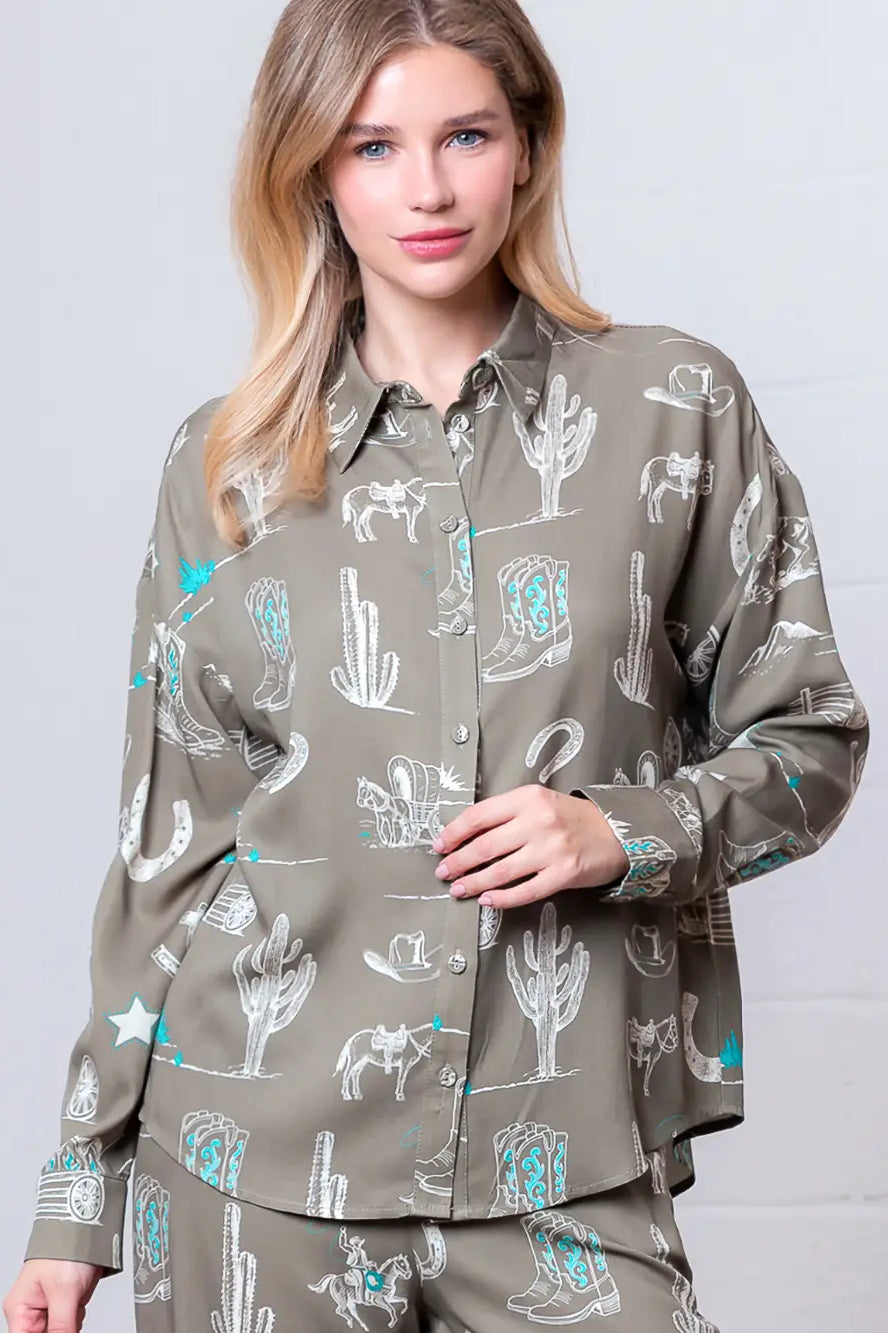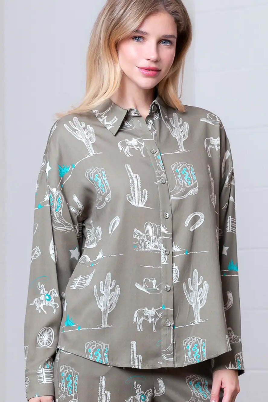 • Can I find blouses with a Western or country aesthetic? Absolutely. Many of our blouses and shirts perfectly complement a Western-inspired wardrobe. You can find styles that pair perfectly with denim, leather, and turquoise jewelry, such as our flowy peasant blouses or button-downs with unique patterns.