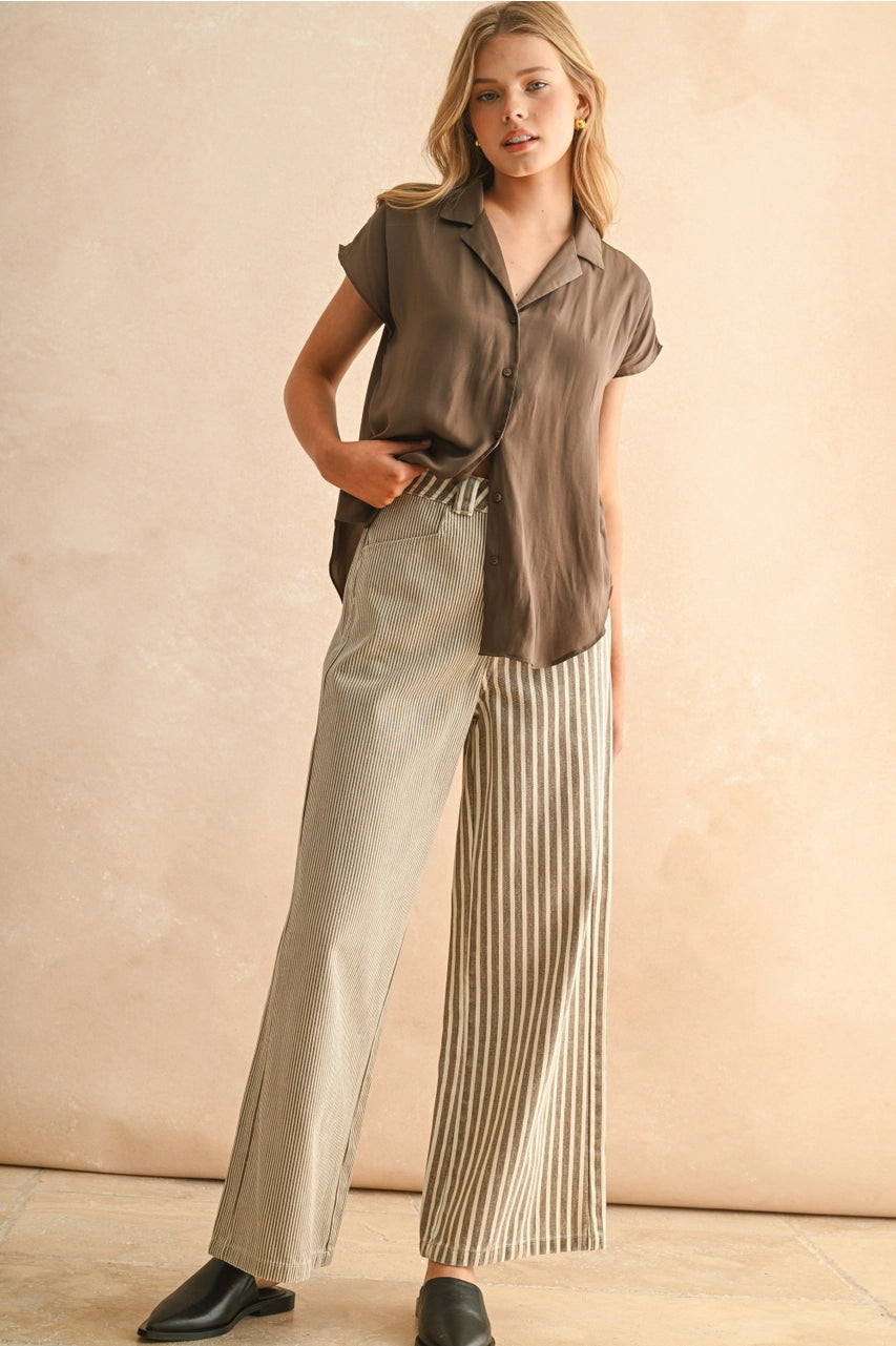 • How can I style a button-down shirt from your collection? Our button-down shirts are incredibly versatile. For a classic look, you can tuck them into a pair of denim jeans or trousers. For a more casual, layered style, wear them unbuttoned over a basic tank top. You can also tie them at the waist for a trendy, Western-inspired silhouette.