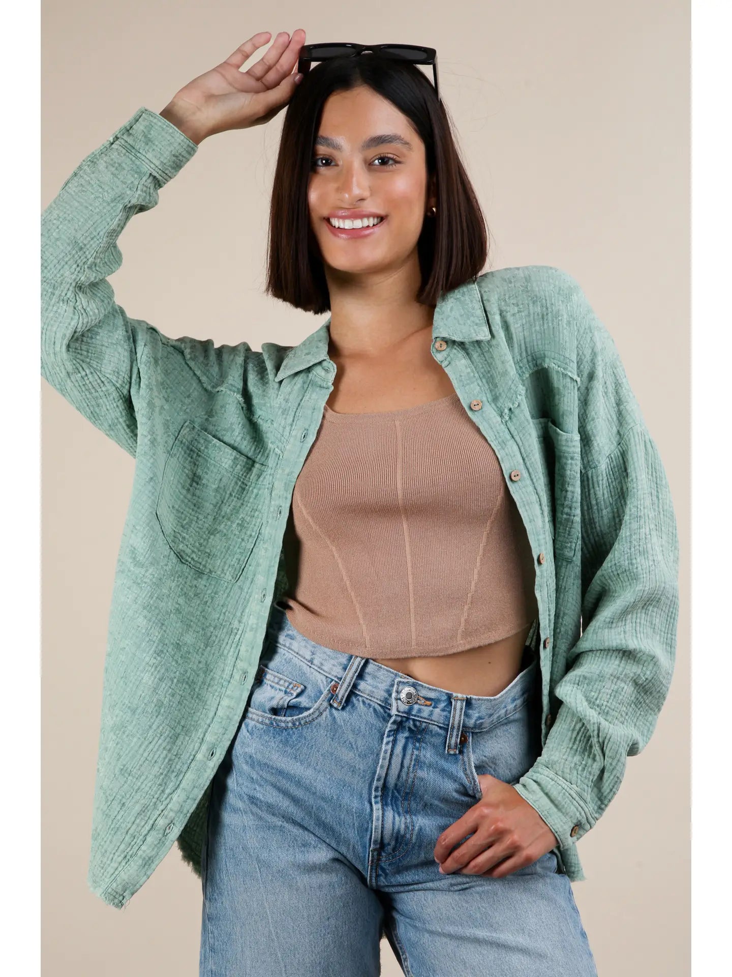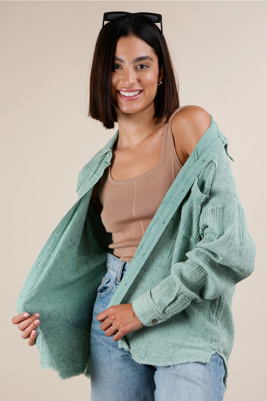 High Desert Sage Mineral-Wash Gauze Shirt Jacket – 100% Cotton