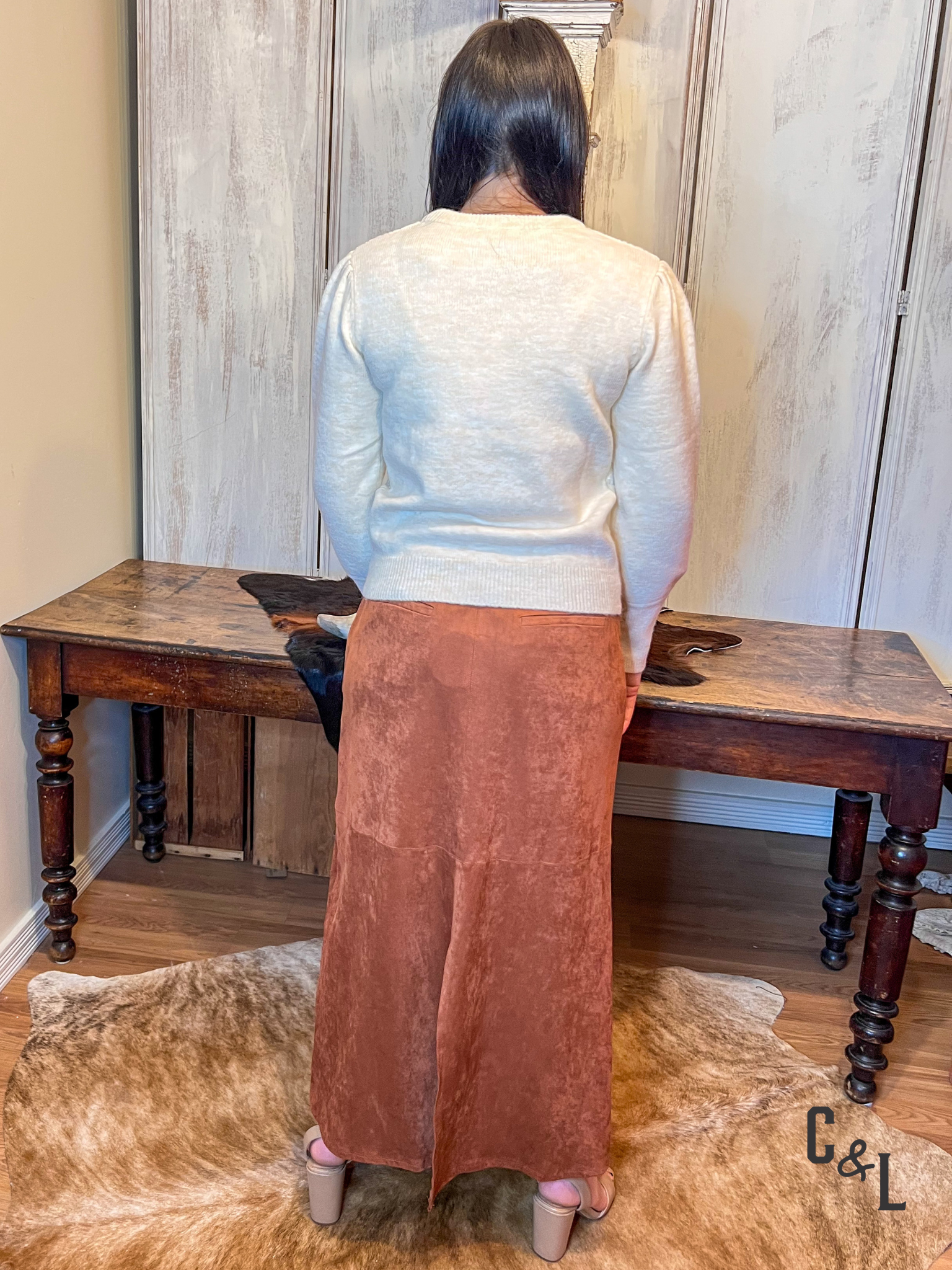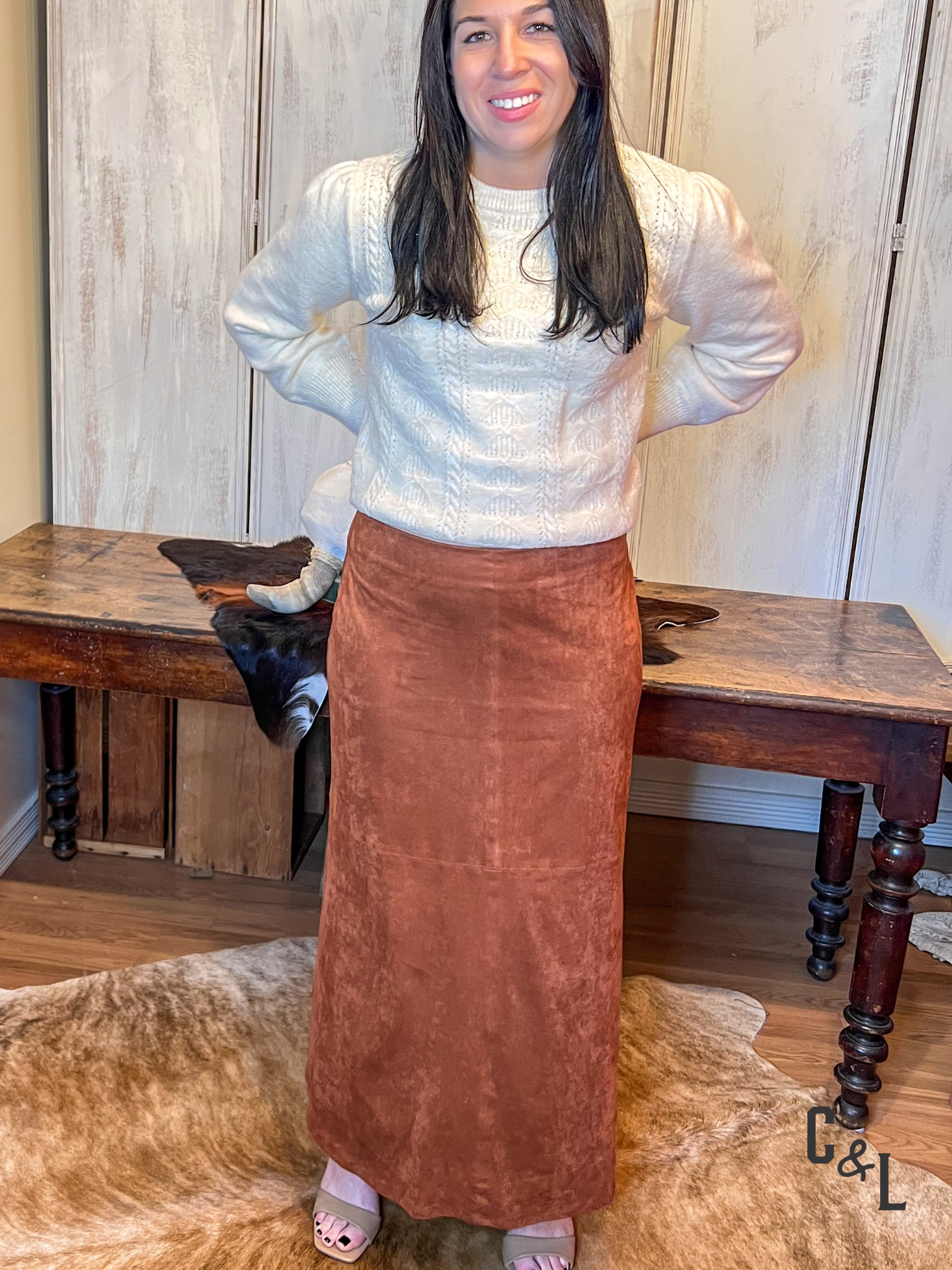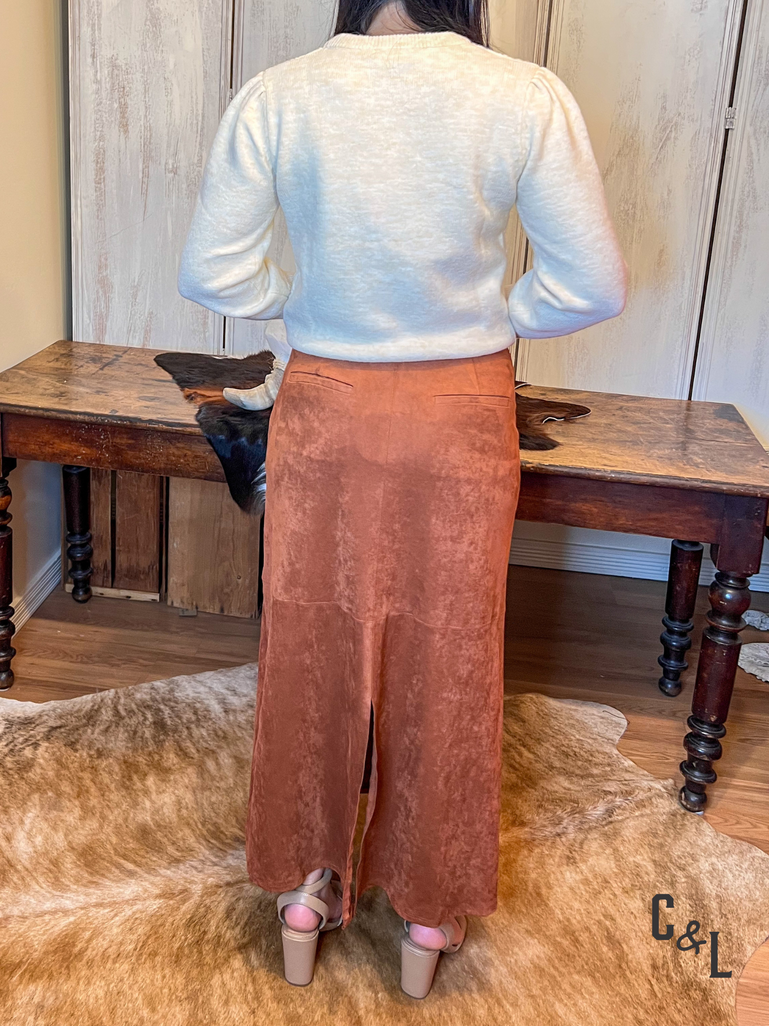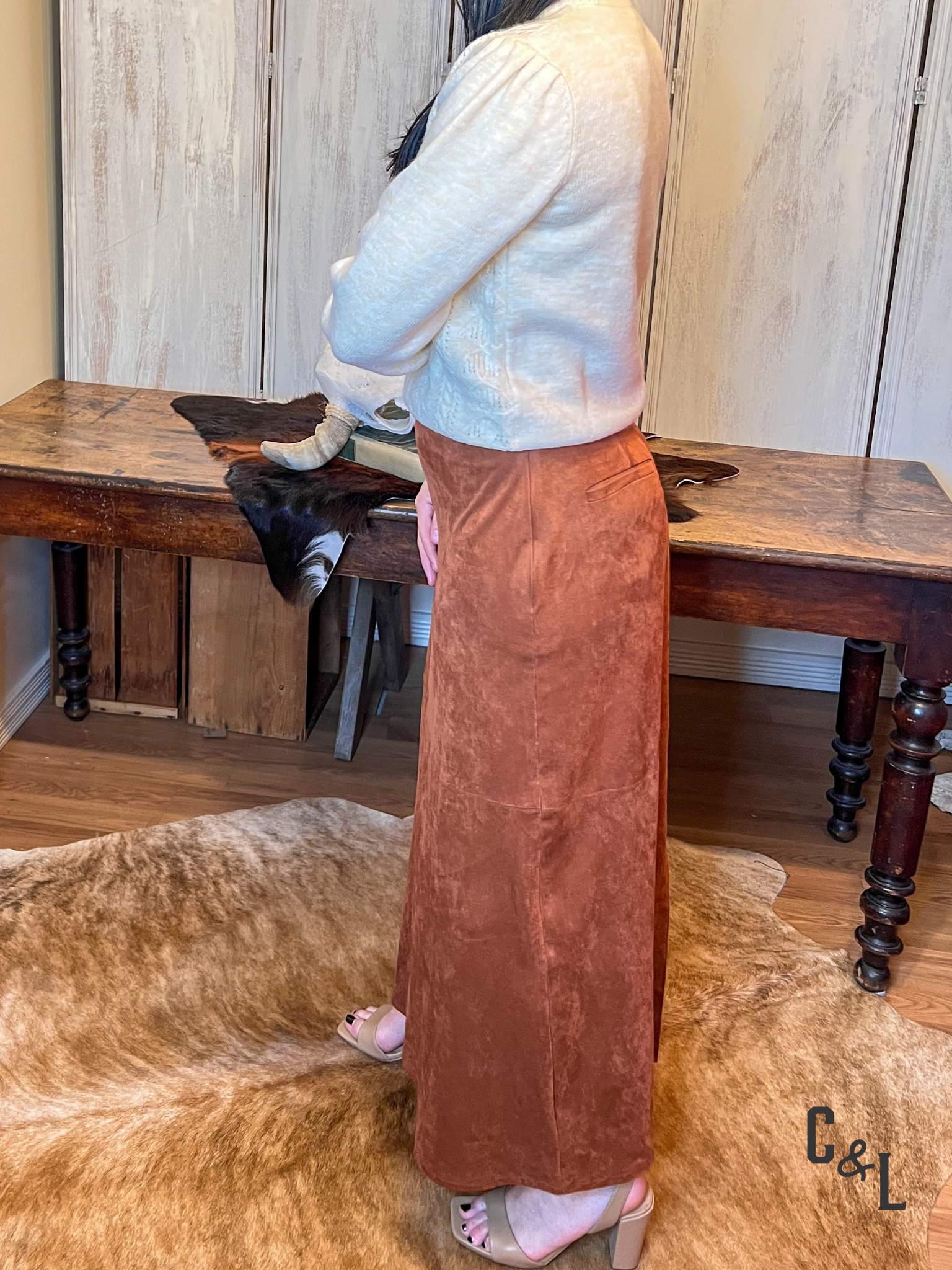 Regal Poise Faux Suede Maxi Skirt by Lost + Wander