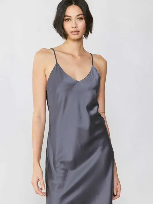The Sonoma Silk Slip Dress — a timeless Copper & Lace piece inspired by the effortless minimalism of the ’90s. Crafted from 100% pure silk in a stunning cement grey hue, this lustrous mini slip drapes beautifully over the body, offering a slinky, naturally contoured silhouette that moves with grace and ease.