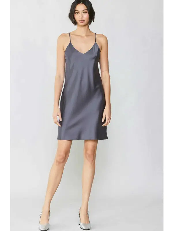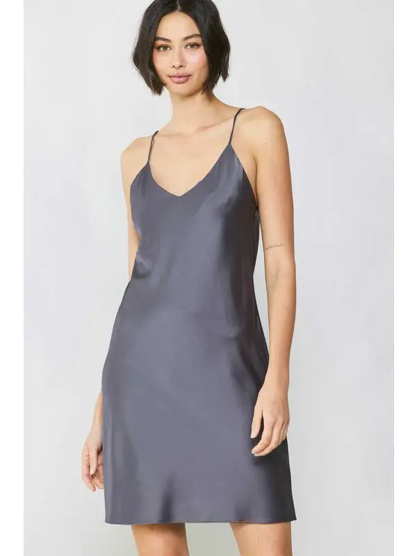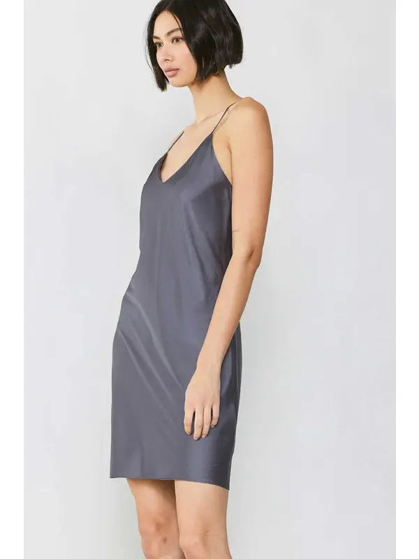 Mini-length slip dress with minimalist 90s silhouette