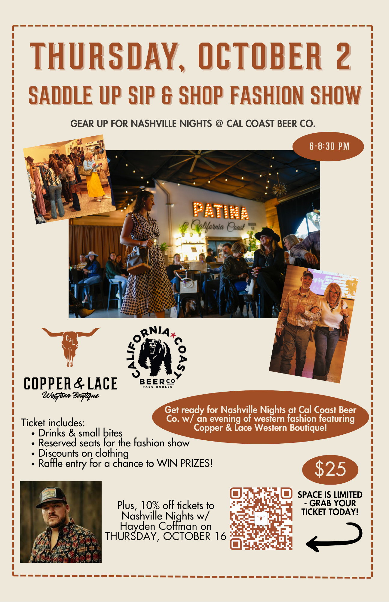 Join our community in Paso Robles, CA, for unique in-store events and workshops. From handcrafted leather sessions to exclusive shopping nights, discover all upcoming events at Copper & Lace Western Boutique.  Sign up today.