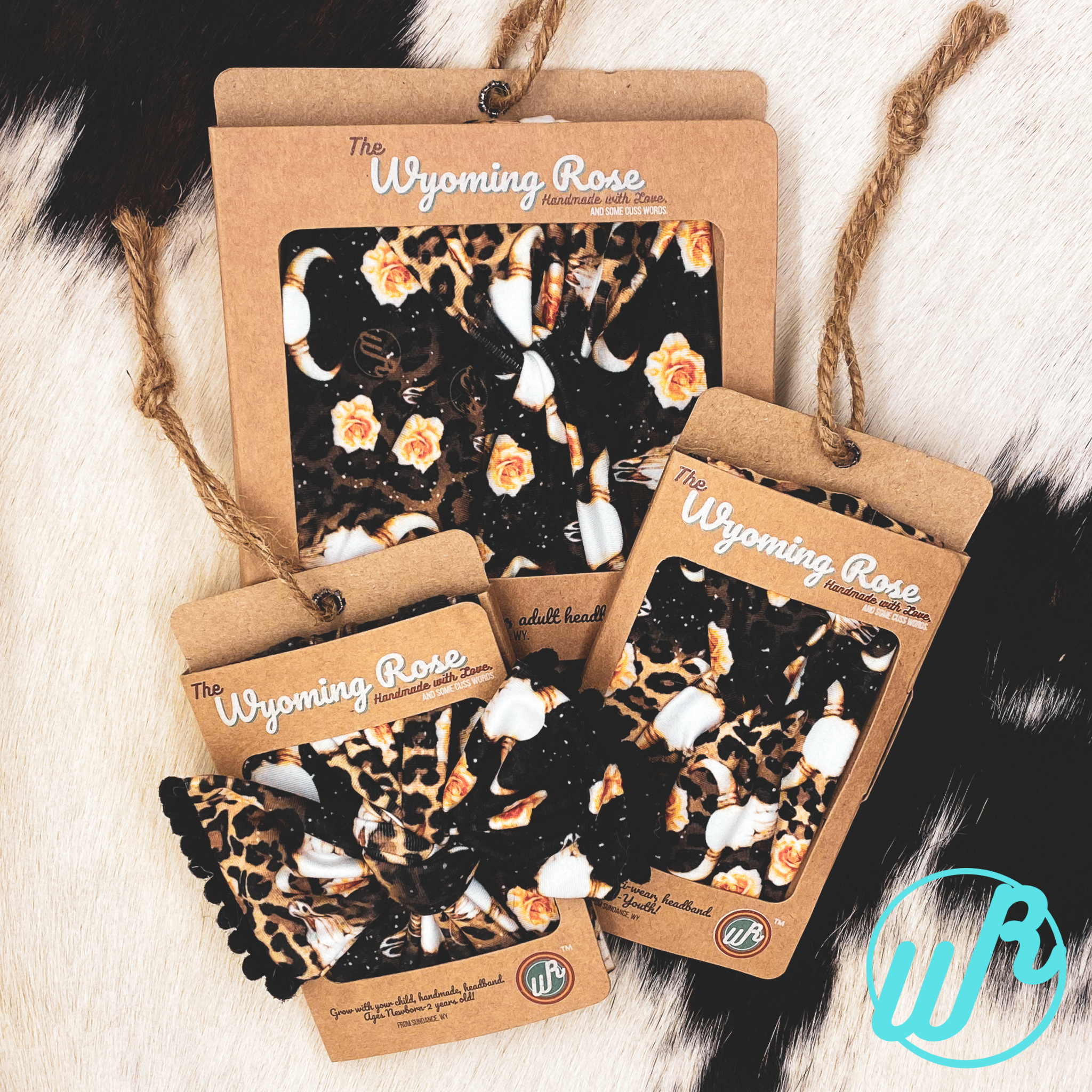 Wyoming Rose is a faith based brand that specializes in custom, handmade headbands for women in the agriculture industry. Our headbands are not only stylish and comfortable, but are also a symbol to showcase second chances and fresh starts to the survivors of domestic abuse and sex trafficking. This Custom designed, Handmade Knotted Headband is light-weight, moisture wicking, stretchable, and comfortable! Our one-of-a kind pattern helps with slippage, PLUS you have the option to wear it many different ways! "Custom print" = The print is either designed by, "The Wyoming Rose" or by another small business graphic designer. It's then special custom ordered onto the top quality fabric! The designs are then specially ordered to be printed onto top-quality fabric. They are offered in 3 different sizes: *Adult Knotted: This is the original WY Rose headband made to be worn multiple different ways!** Machine washable. *3yr-Youth Knotted: This makes for choice as a headbands for 3 years old up to older children! It also m