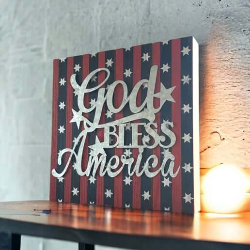 Fourth of July Memorial Day God Bless America Welcome Wall Sign