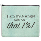 The Halo Hills Canvas Travel Bag — a playful yet polished Copper & Lace accessory for the woman who’s equal parts sweet and sassy. Made from sturdy light blue canvas, this perfectly sized travel pouch features the cheeky quote “I am 99% Angel, but oh that 1%!” screen printed in bold black lettering.