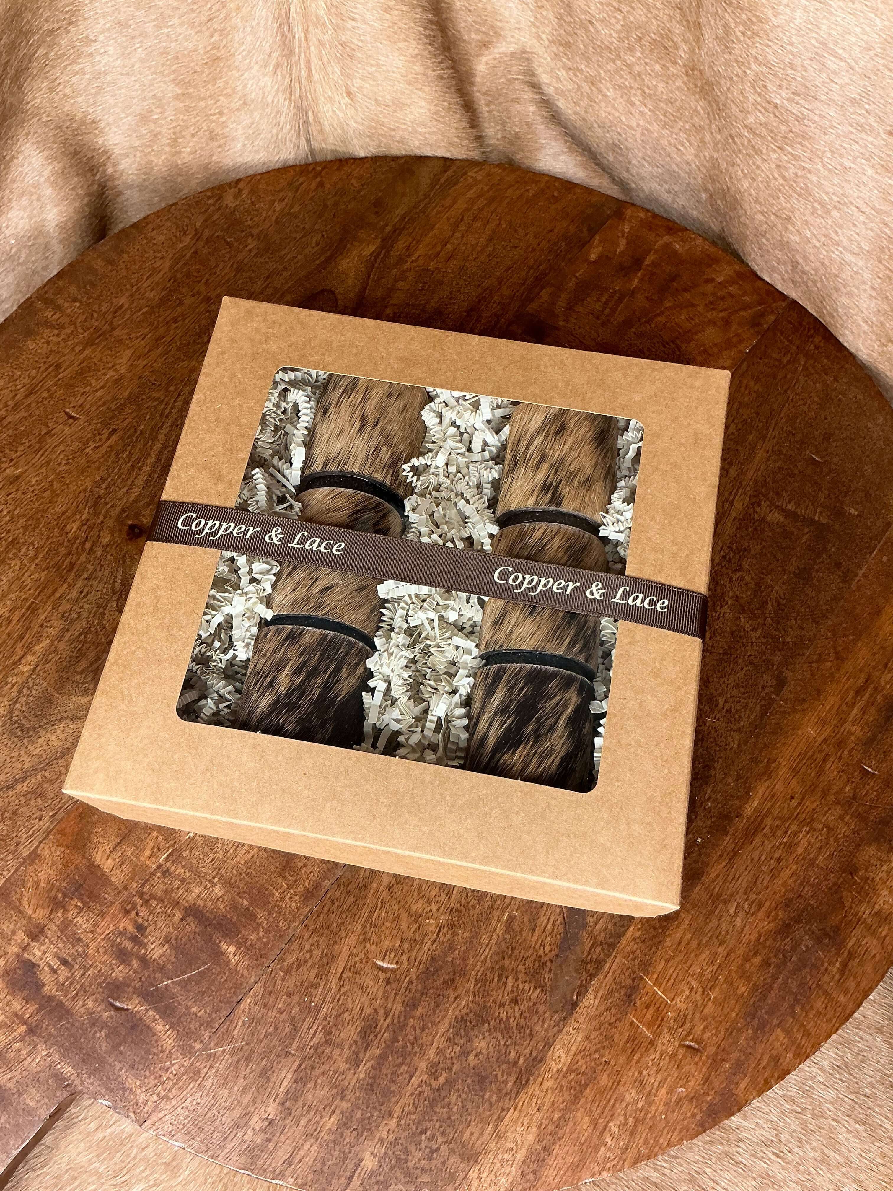 Handcrafted Leather Brindle Hair on Hide Napkin Rings 6pcs