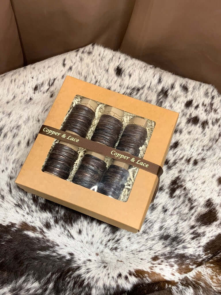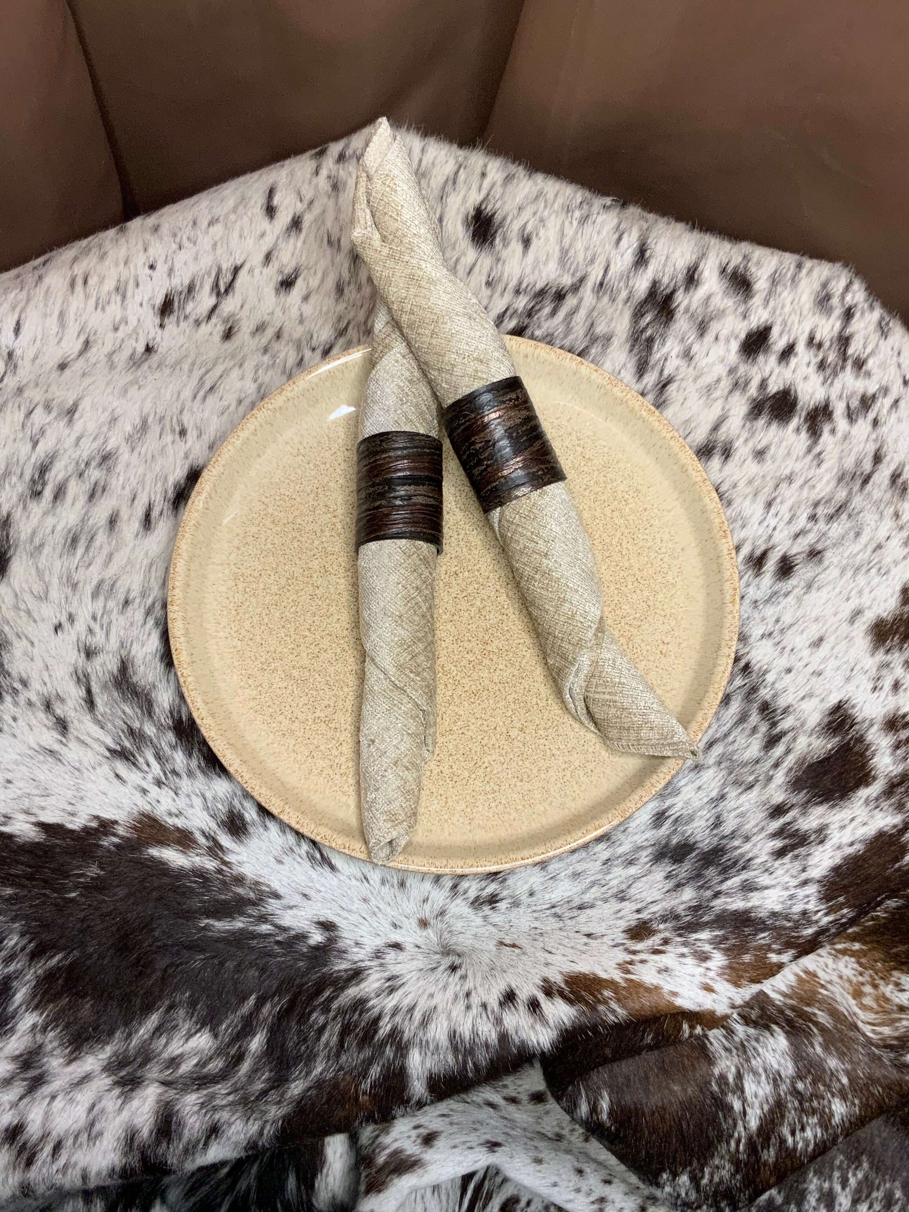 Add a touch of rustic elegance to your dining experience with these handcrafted embossed leather napkin rings, made right here in Paso Robles, CA. This set of 6 leather napkin rings features intricate embossing and snaps at the back for easy use, making them both stylish and functional. Perfect for dressing up any table setting, they bring a unique western charm to your gatherings. Whether you're hosting a dinner party or looking for a thoughtful birthday or hostess gift, these napkin rings are sure to impress. Crafted with care, they make a wonderful addition to any western-themed or rustic table décor.