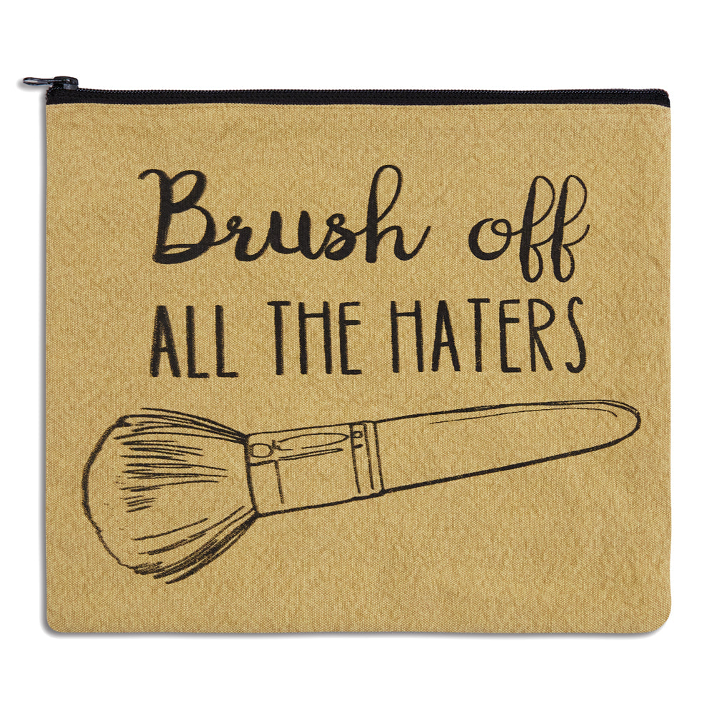 The Brush Off Canvas Travel Bag — a cheeky Copper & Lace essential that combines humor, practicality, and a whole lot of sass. Featuring the bold phrase “Brush Off All Haters” with a playful makeup brush illustration printed in classic black ink, this tan canvas pouch is made for the confident woman who knows how to travel in style — and attitude.