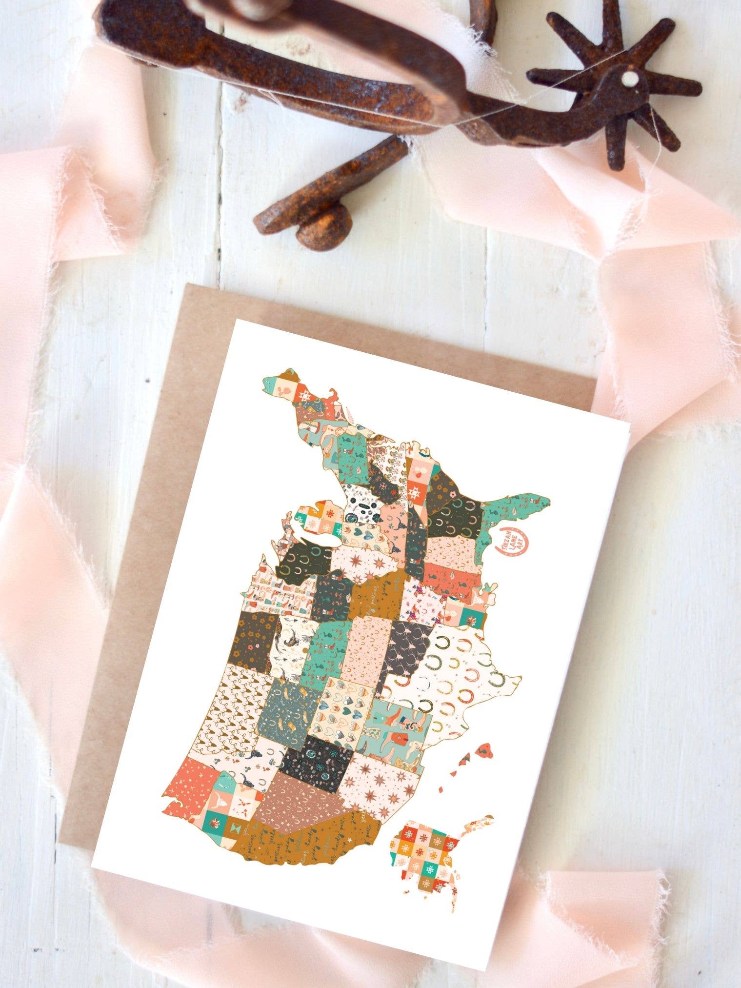 Western Cowboy Cowgirl Colorful United States Patchwork Card