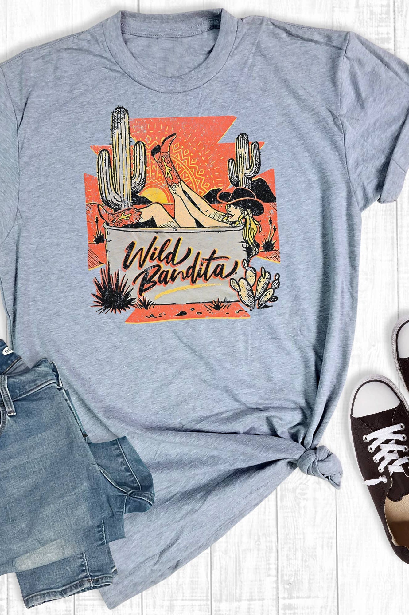 • What are the common themes of your graphic tops? Our graphic tops are heavily influenced by Western culture and a love for country life. You'll find themes related to rodeo, ranching, and cowboys, along with designs featuring horses, cacti, and patriotic elements. We also have a selection of retro-style graphics and tops with playful, witty phrases.