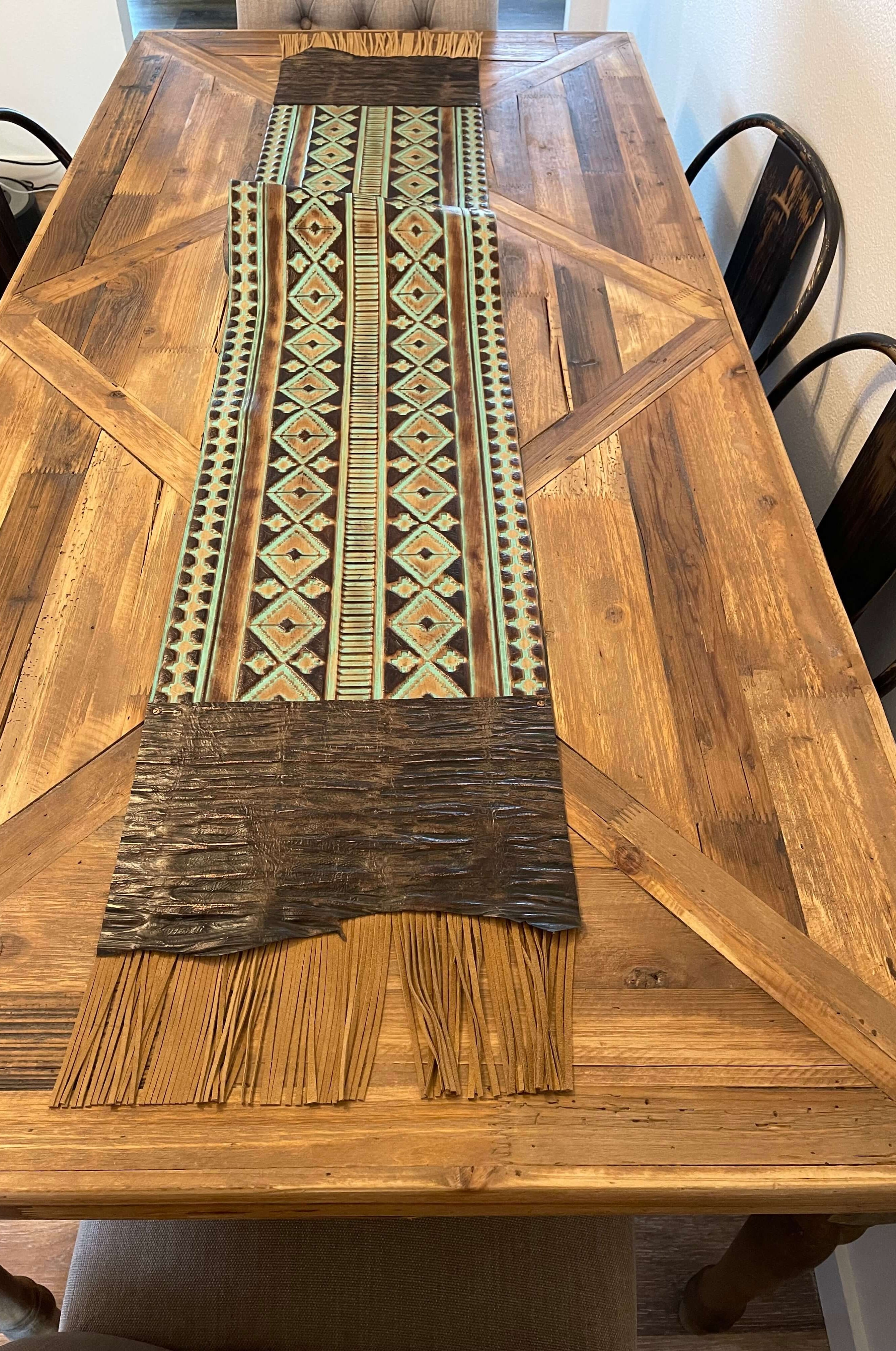 - What makes your table runners unique? Our table runners are unique because they are personally and thoughtfully crafted by Charlyn Pacheco. The leather is carefully selected and often features intricate, hand-tooled patterns, beautiful rustic finishes, or unique shapes that transform a simple accent into a timeless statement piece