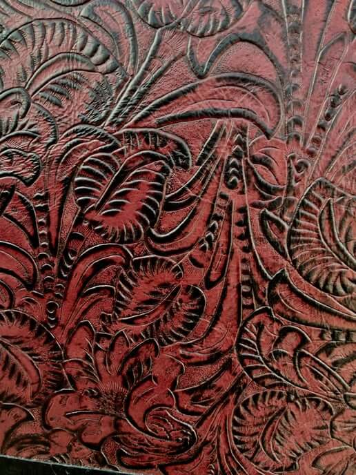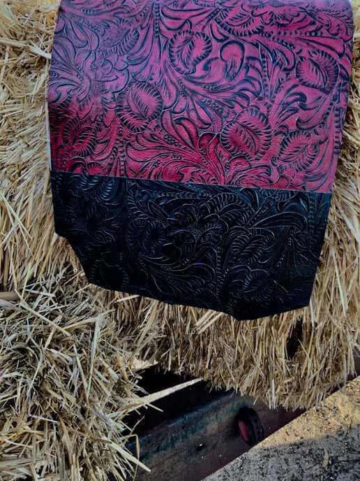 Handcrafted Embossed Leather Table Runner Handcrafted in the USA This Handcrafted Black and Pomegranate Red embossed leather table runner is so striking! The dark Pomegranate embossed leather body of the runner is accented with Black embossed leather ends that have a natural raw finished edge. This runner will add so much to you table. It is easy to clean, simply just wipe off any spill with a damp cloth. Only us water to dampen the cloth for cleaning up spills. This cowhide leather embossed table runner will last for years. What you will receive: One handcrafted leather table runner. Dimensions: Length- 38" Width- 12" Uses: These table runners can be used on entry tables, coffee tables, dining tables or event a dresser in your bedroom. They will add texture to your tabletop display and warmth that a fabric runner never can. Shipping: We ship Table Runners by UPS or Fed Ex and will supply tracking once order ships. Policies- We do except returns if you are unhappy with our products. We make every leather item with love and hold it to a high standard. We will not ship any item unless we are 100% pleased with that item we have sold. Please understand that each item we make is a one of a kind handcrafted item by Copper & Lace(AKA My Self, HAHA) We handcrafted each item out of leather cow hides and every hide is different and will hold some imperfections in the leather hide itself. We handcraft item with love for what we create. There are no two items alike and there might be slight imperfections as the items are created 100% by hand and NOT by a machine. We do not use sewing machines for our sewing, we hand punch the holes then hand stitched with a needle and thread. This gives a rustic handcrafted rustic look. This is my style and how I choose to make my product to ensure it looks handcrafted.