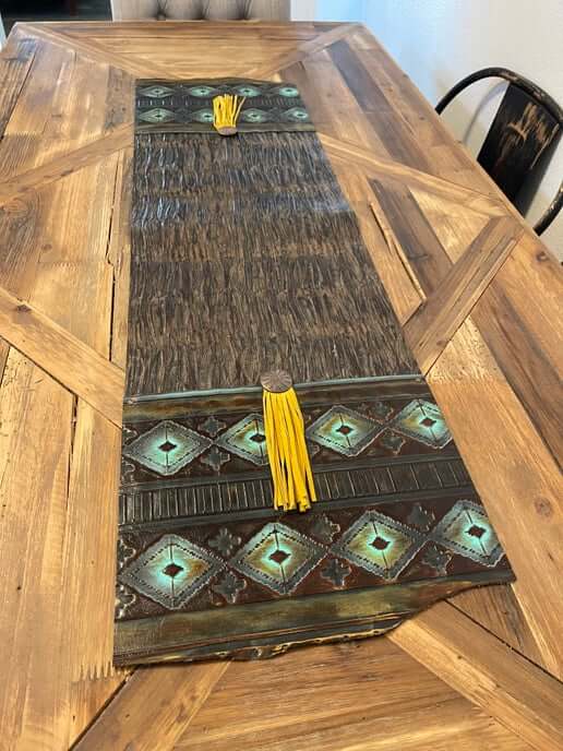 Handcrafted Embossed Leather Table Runner Handcrafted in the USA