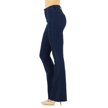 Crafted from ultra-dark indigo super soft stretch denim (98% cotton, 2% spandex) with a mid-rise fit, these jeans offer a comfortable, flattering silhouette that’s made to move with you. Featuring functional carpenter pockets for a rugged touch and the signature indigo-and-red tab on the back pocket, they capture the essence of Western workwear with a modern twist. With a 9.75" front rise, 33" inseam, and 17" leg opening, they deliver both comfort and classic style. Make the Morrison Denim Trucker Jeans your new staple for a look that pairs perfectly with both your favorite boots and heels.