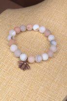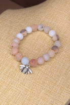 All about the Bees -Peach and Cream White Agate Off White Natural Druzy Quartz Matte Agate Round Beads 10mm strung on stretch cording. You pick either copper or antique silver large Bee charm. Strung on a stretch cording to make this bracelet the perfect fit.