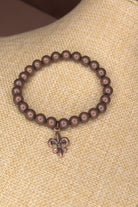 C&L Fleur de lis 8mm Metal Bead Stretch Bracelet