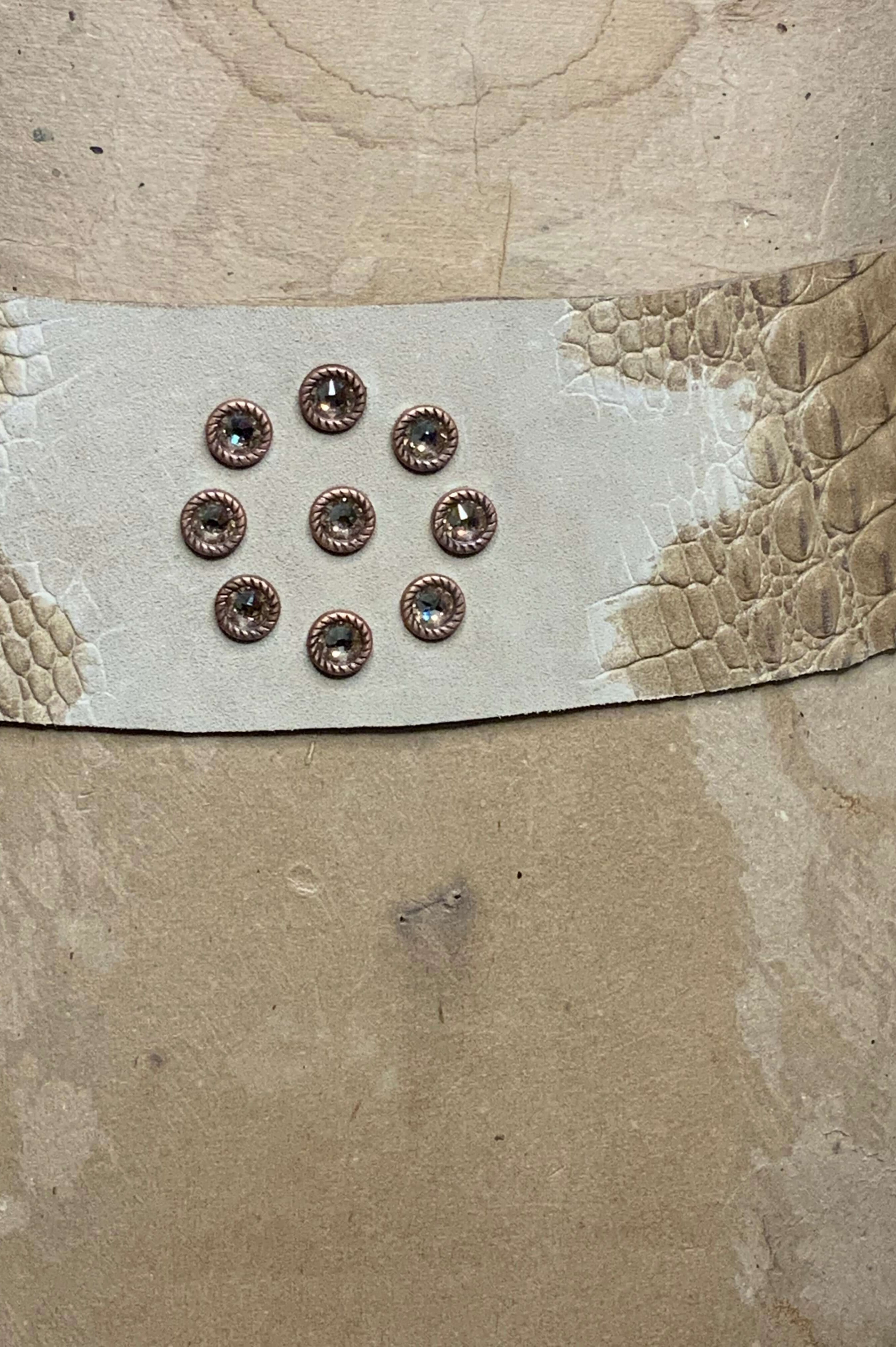 - What materials are used to make your handcrafted belts? Our handcrafted belts are made from high-quality, durable leather. This premium material ensures each belt is not only stylish but also built to last. The hardware, studs, and embellishments are carefully selected to complement the leather and enhance the overall design