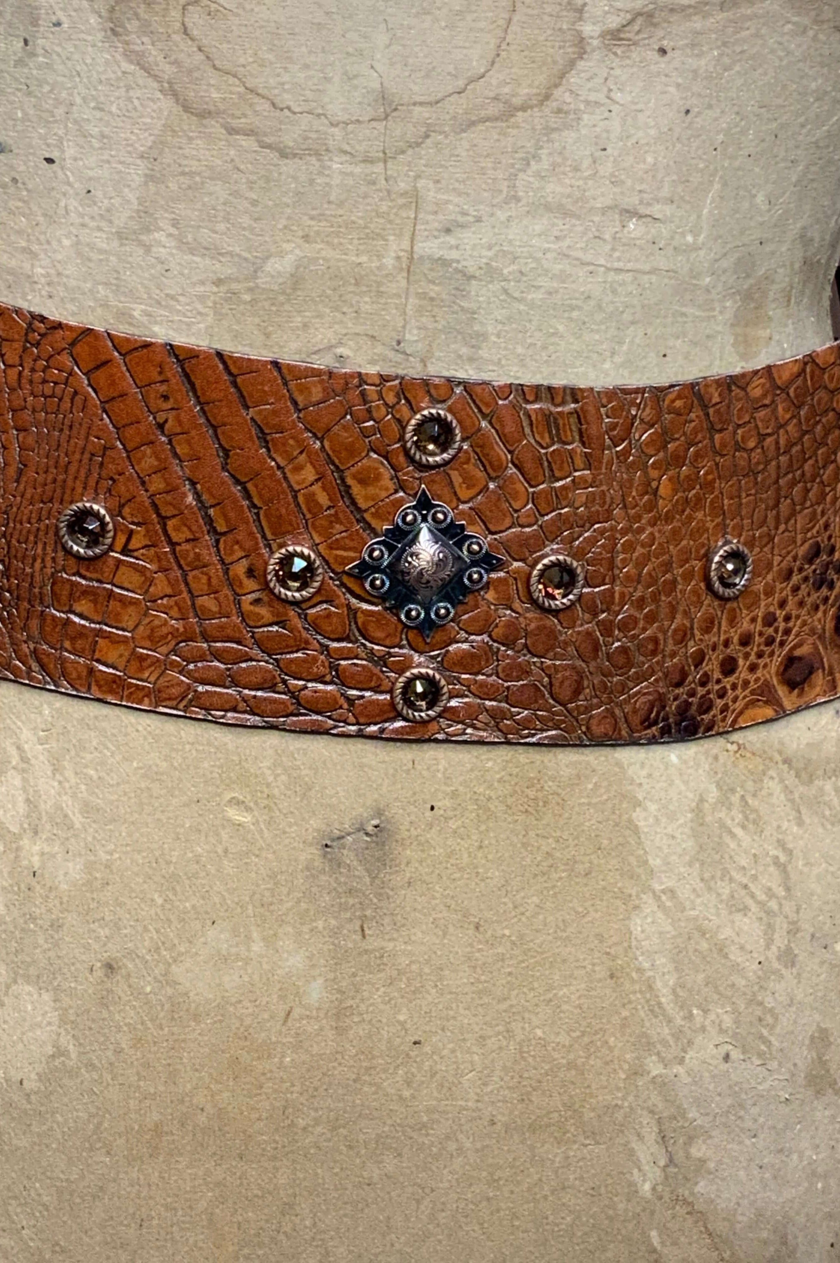 - Who handcrafts these leather hip belts? Our entire collection of handcrafted leather belts is personally made from start to finish by our owner, Charlyn Pacheco. Each piece is a unique work of art, reflecting her passion for Western design and meticulous attention to detail.