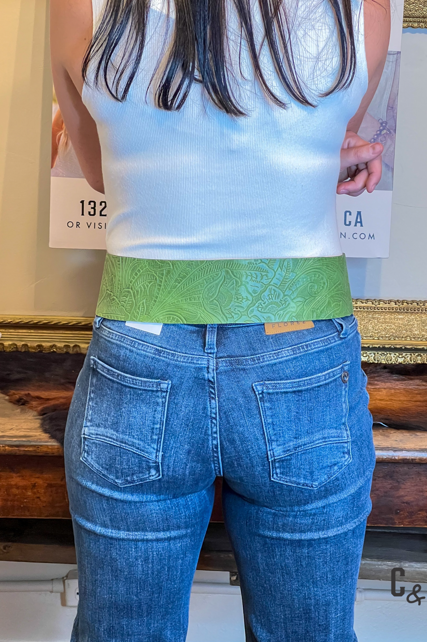 - How should I style a leather hip belt? Our leather hip belts are the perfect accessory to elevate any outfit. You can wear them with your favorite denim jeans, cinched over a dress or tunic, or to complete a classic Western-inspired look with a graphic tee. They are versatile and add a touch of authentic Western style to any wardrobe