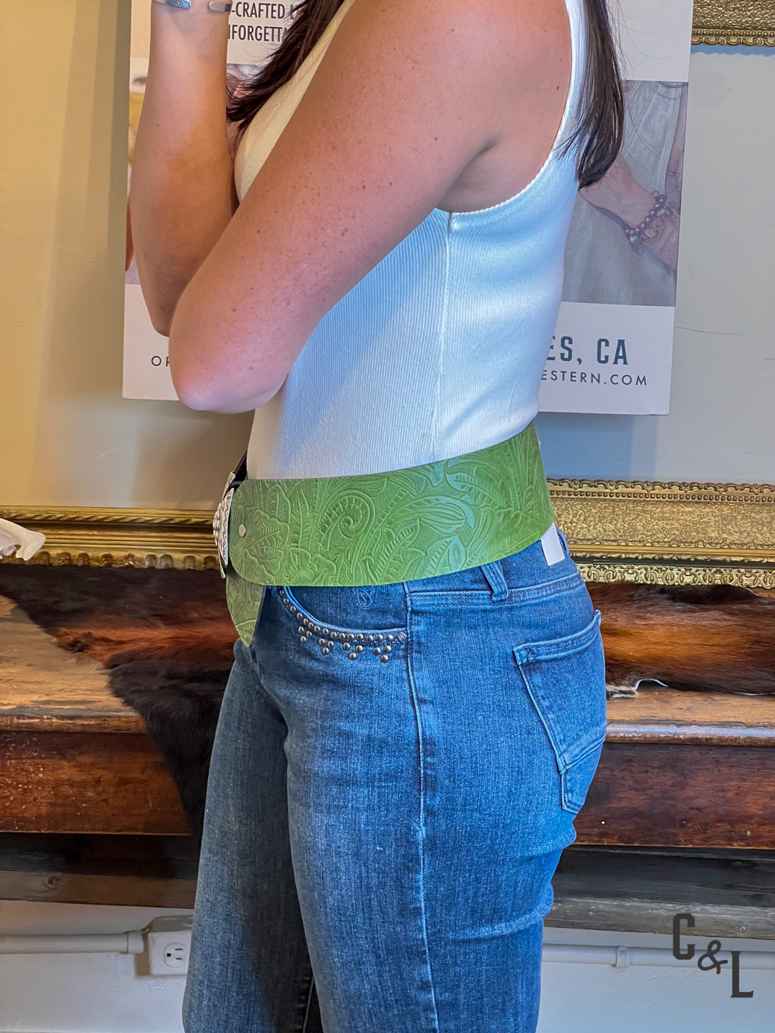 - How should I style a leather hip belt? Our leather hip belts are the perfect accessory to elevate any outfit. You can wear them with your favorite denim jeans, cinched over a dress or tunic, or to complete a classic Western-inspired look with a graphic tee. They are versatile and add a touch of authentic Western style to any wardrobe