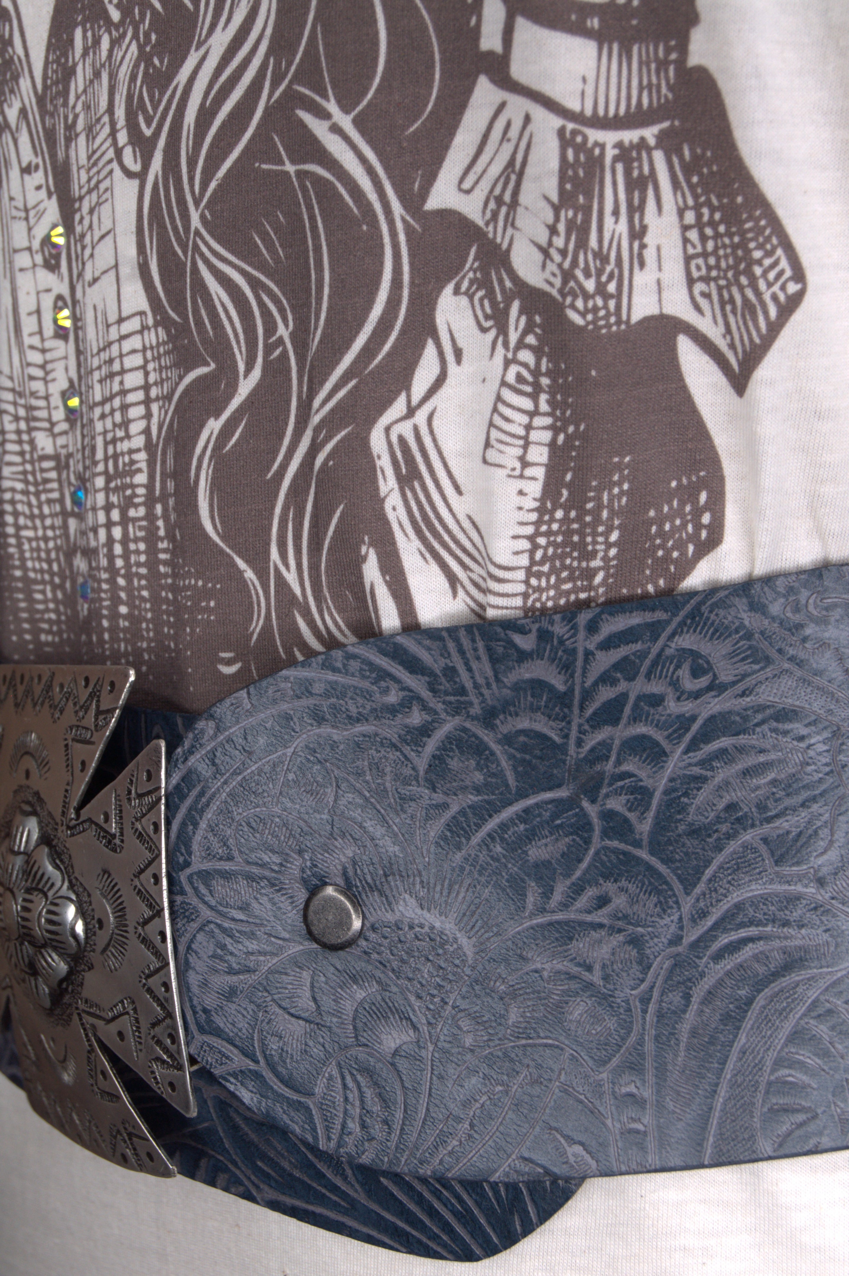 C&L Saphire Moonlight Soft Blossom Embossed Handcrafted Leather Cheyenne Belt