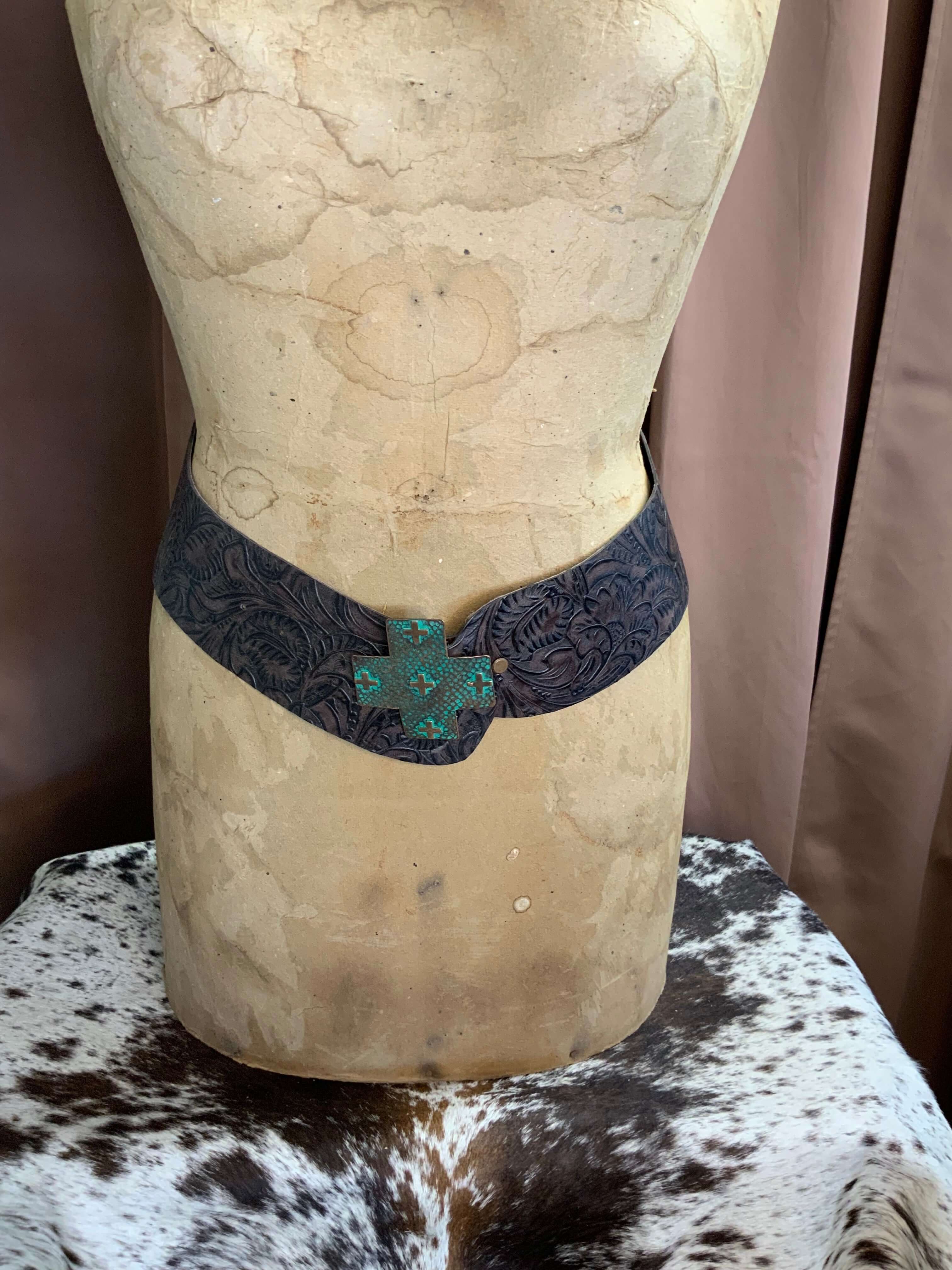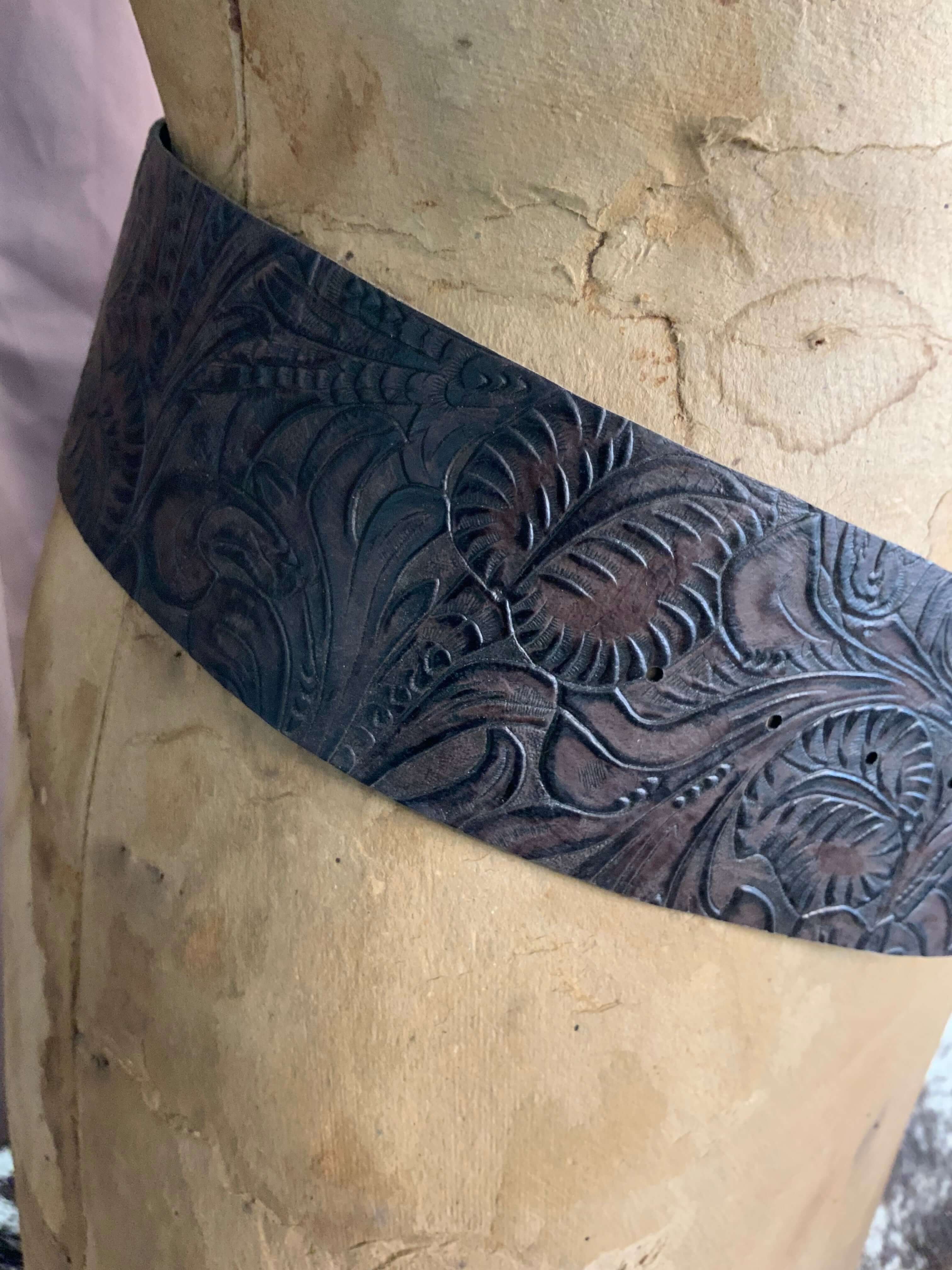 The Chocolate Floral-Embossed Leather Cheyenne Belt — a true Copper & Lace original, handcrafted with pride in Paso Robles, California, USA. This stunning 3-inch-wide hip belt is made from premium hand-shaped, hand-cut leather, featuring a rich floral-embossed pattern that captures timeless Western elegance with a bold, feminine edge.