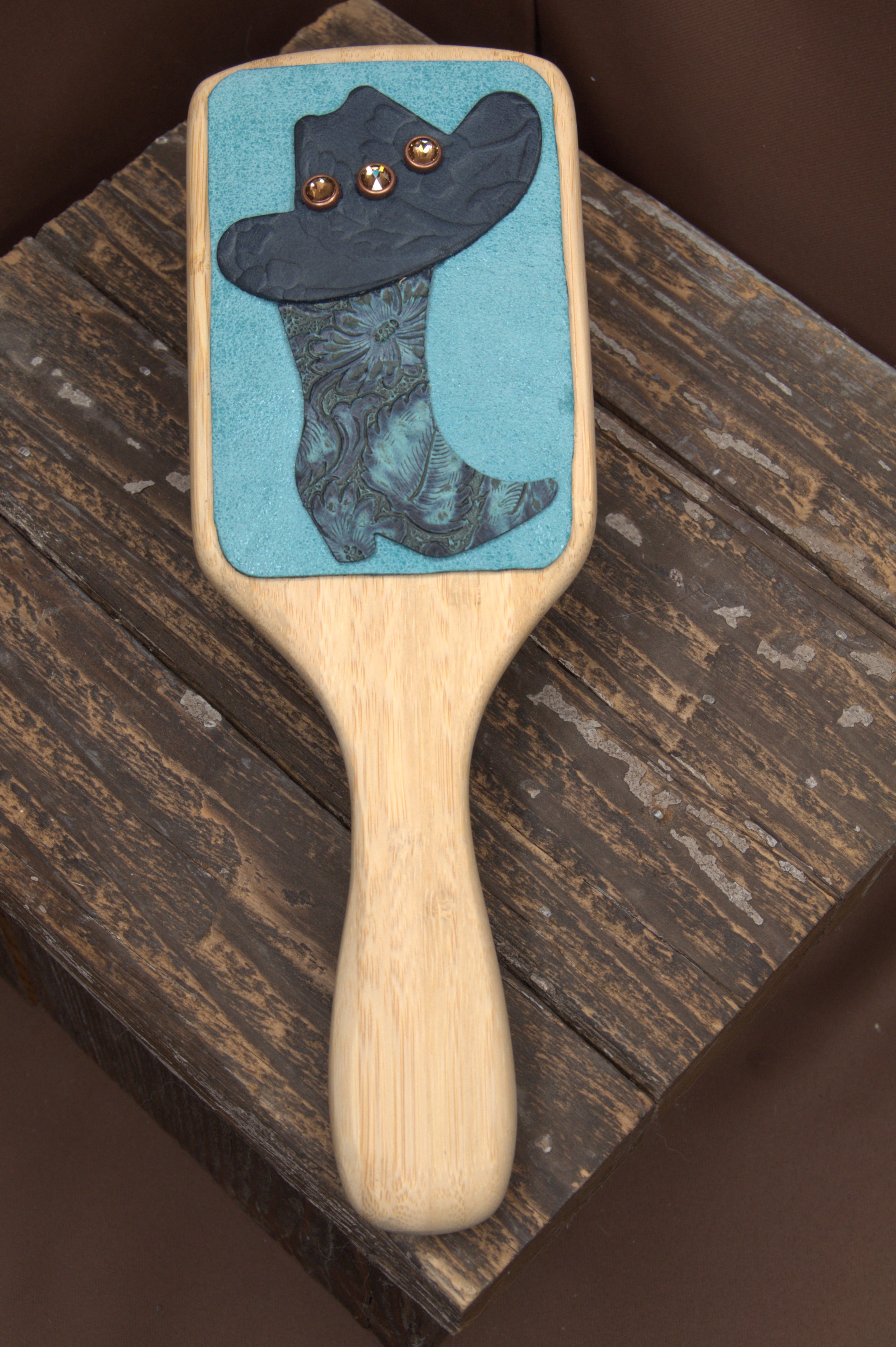- Are these hairbrushes a good addition to a Western-themed home? Yes. These handcrafted hairbrushes are a perfect accessory to add to your bathroom or bedroom decor. The leather embellishments and rustic charm make them a beautiful and subtle way to incorporate Western and Boho style into your home
