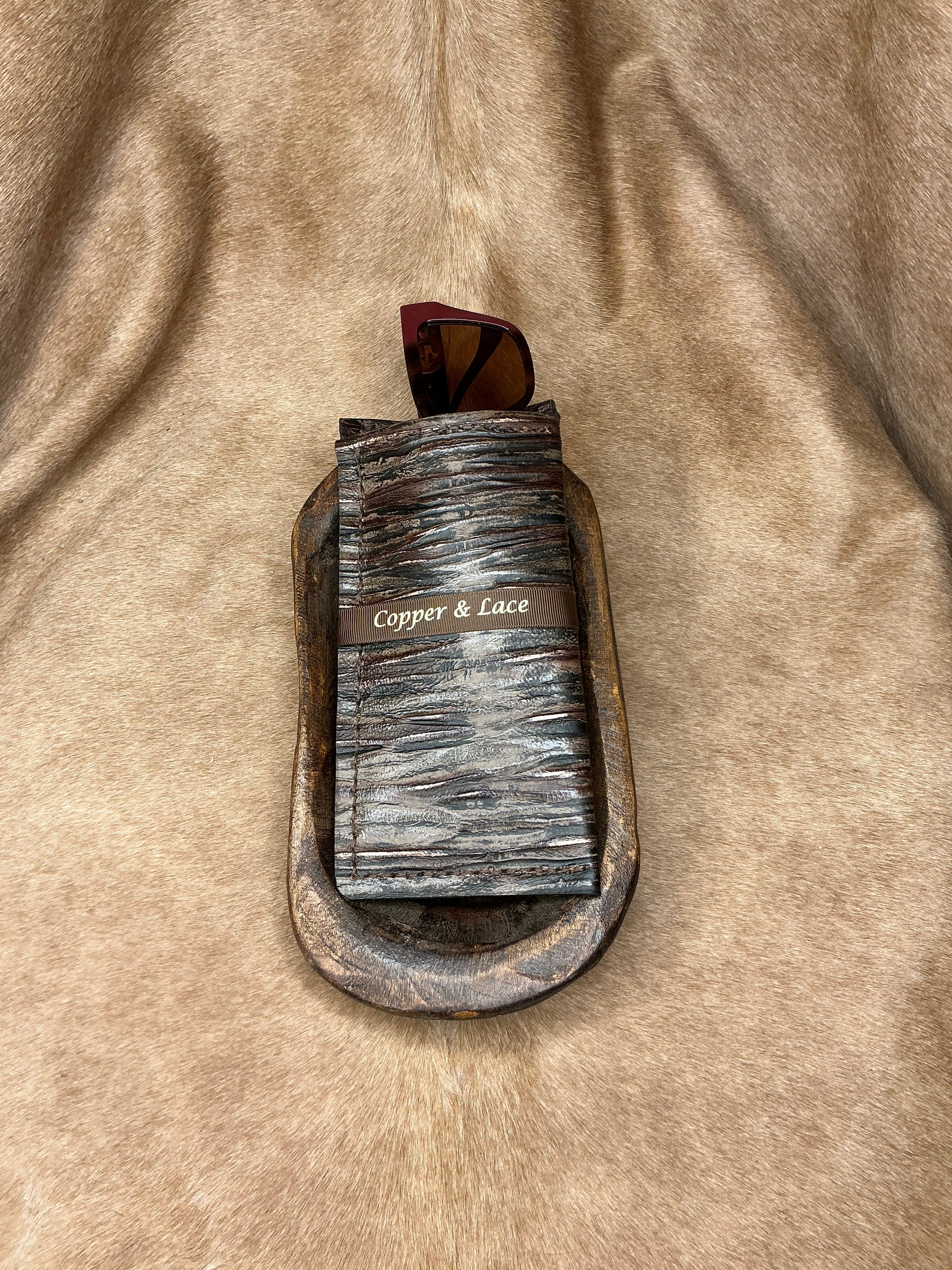 - Who handcrafts these eye and sunglass cases? All of the handcrafted leather cases in this collection are personally designed and made by our owner, Charlyn Pacheco. Her dedication to creating beautiful, authentic pieces ensures that every case is a unique work of art you won't find anywhere else.