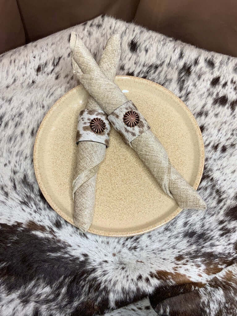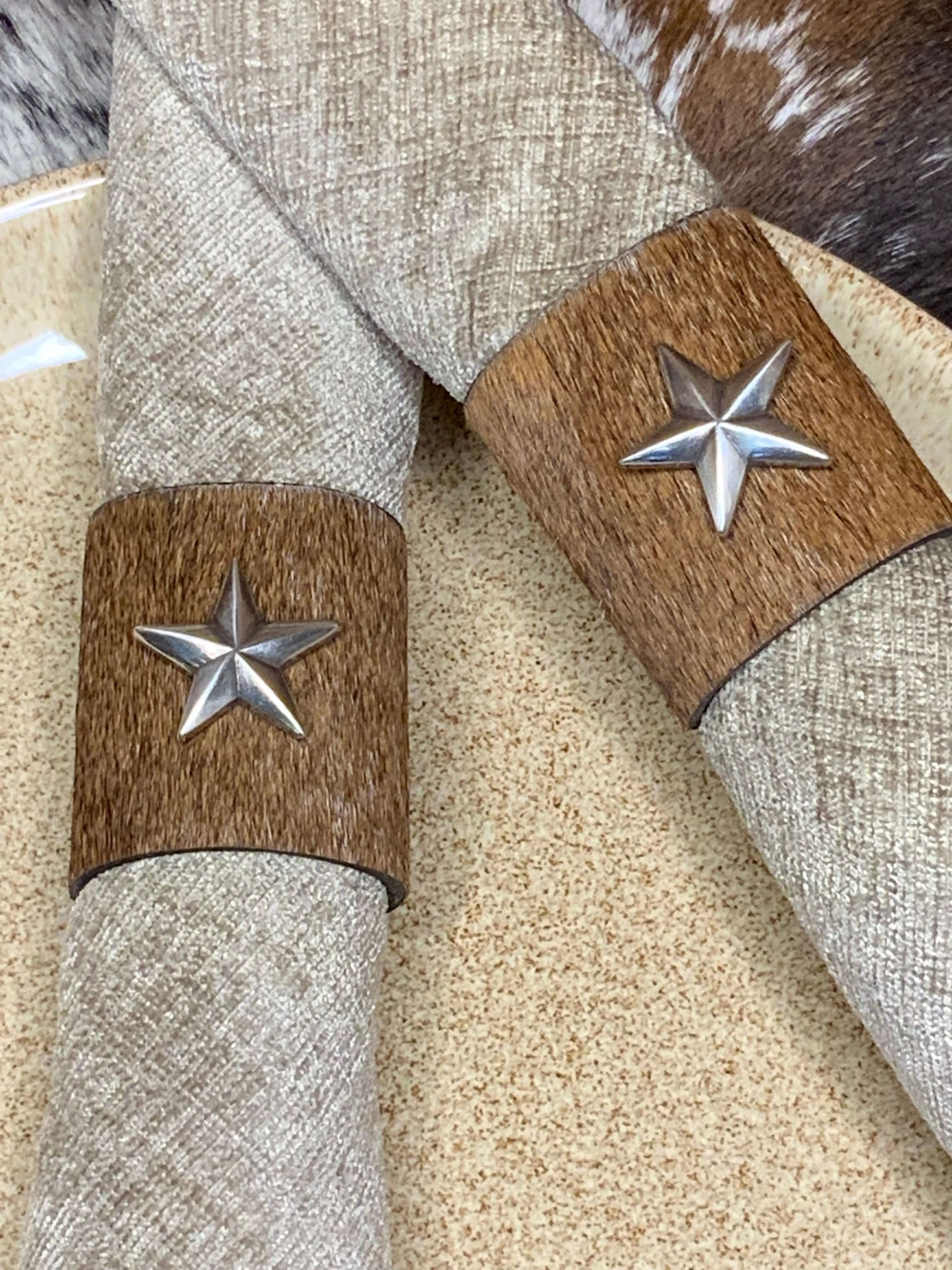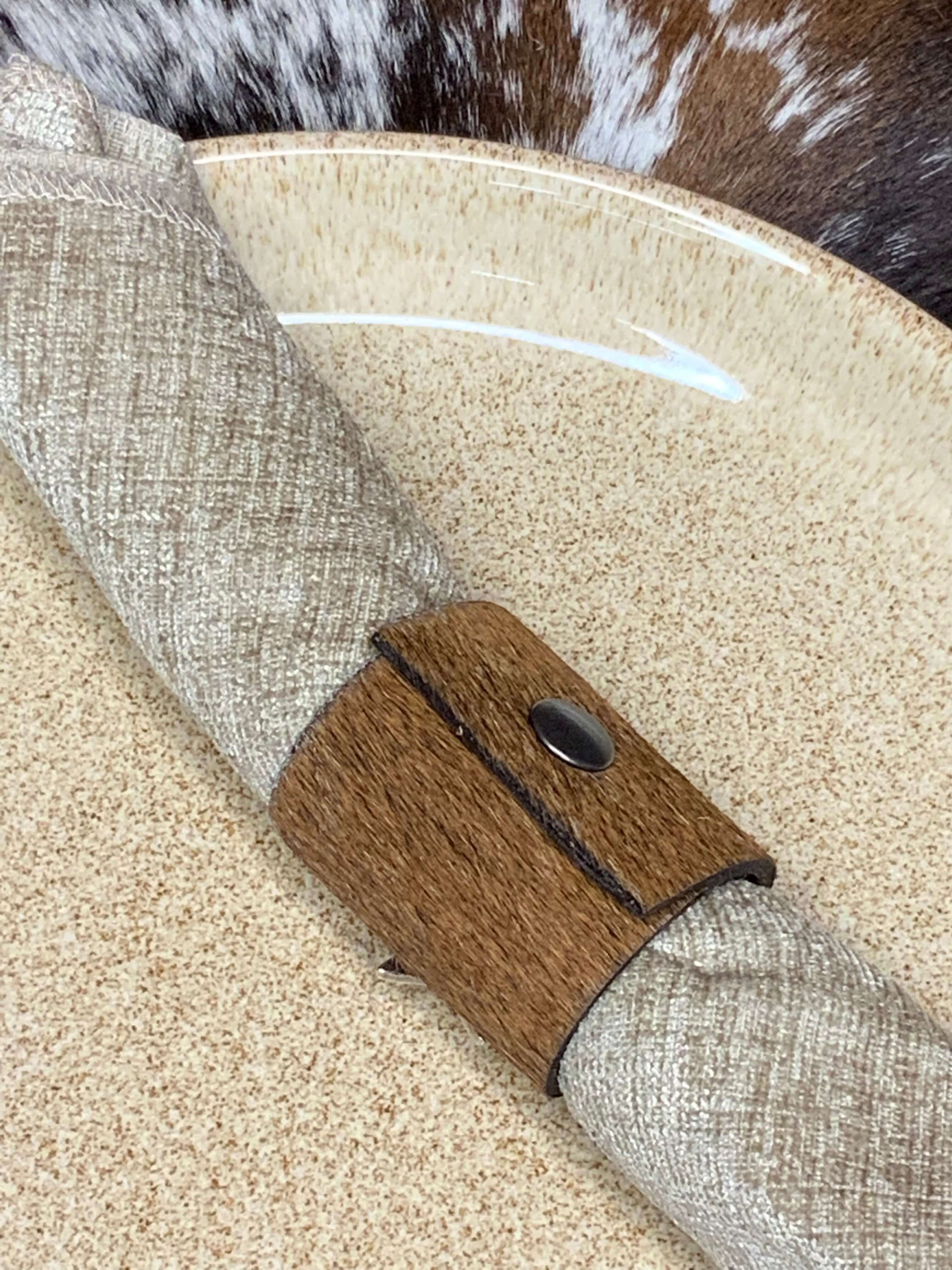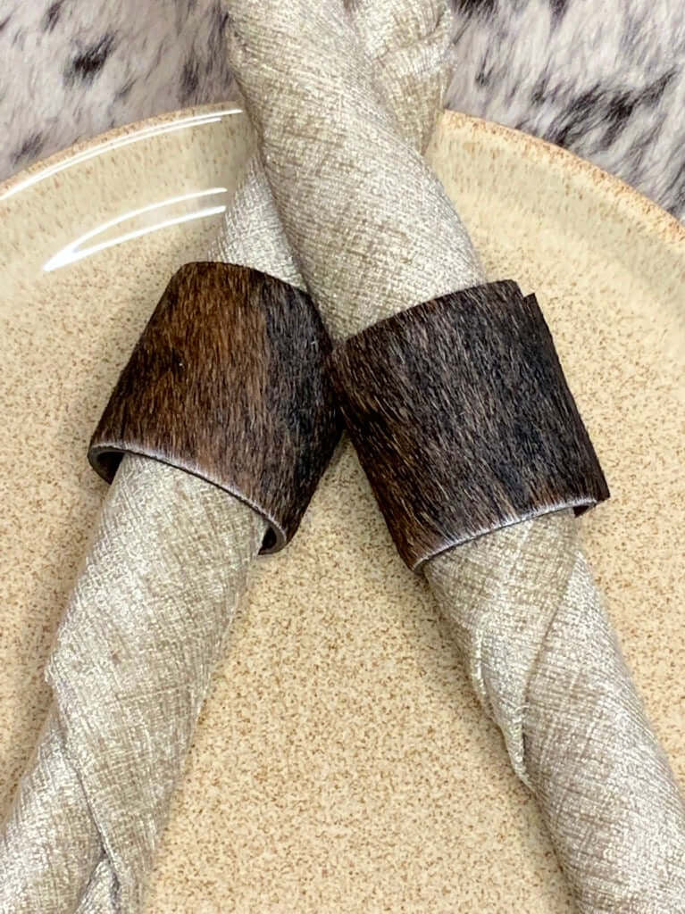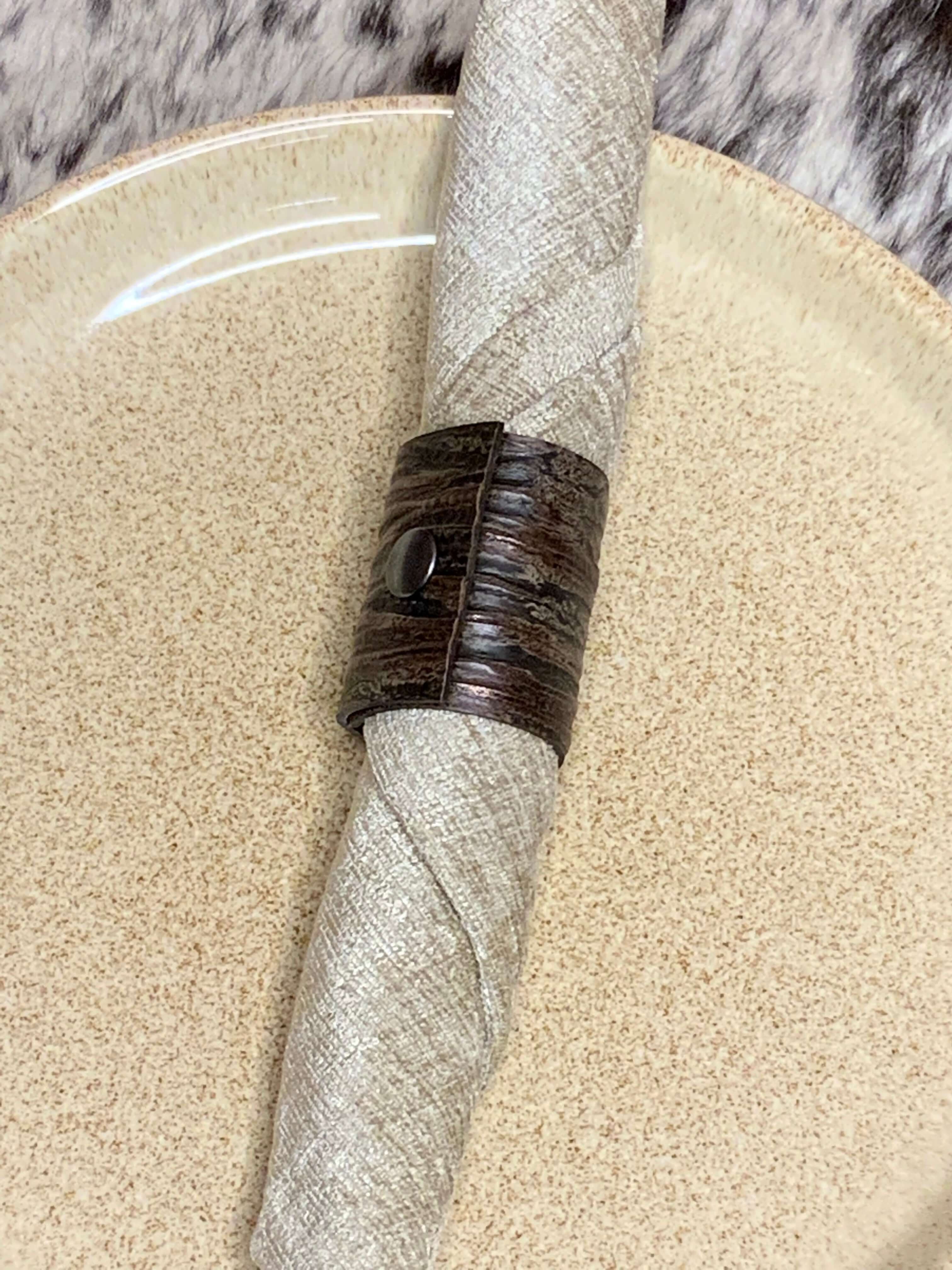 - Are these napkin rings suitable for a rustic or Western home? Yes. Our leather napkin rings are a perfect accessory to add to your dining or kitchen decor. The natural leather and handcrafted details make them a beautiful and subtle way to incorporate Western and rustic style into your home.