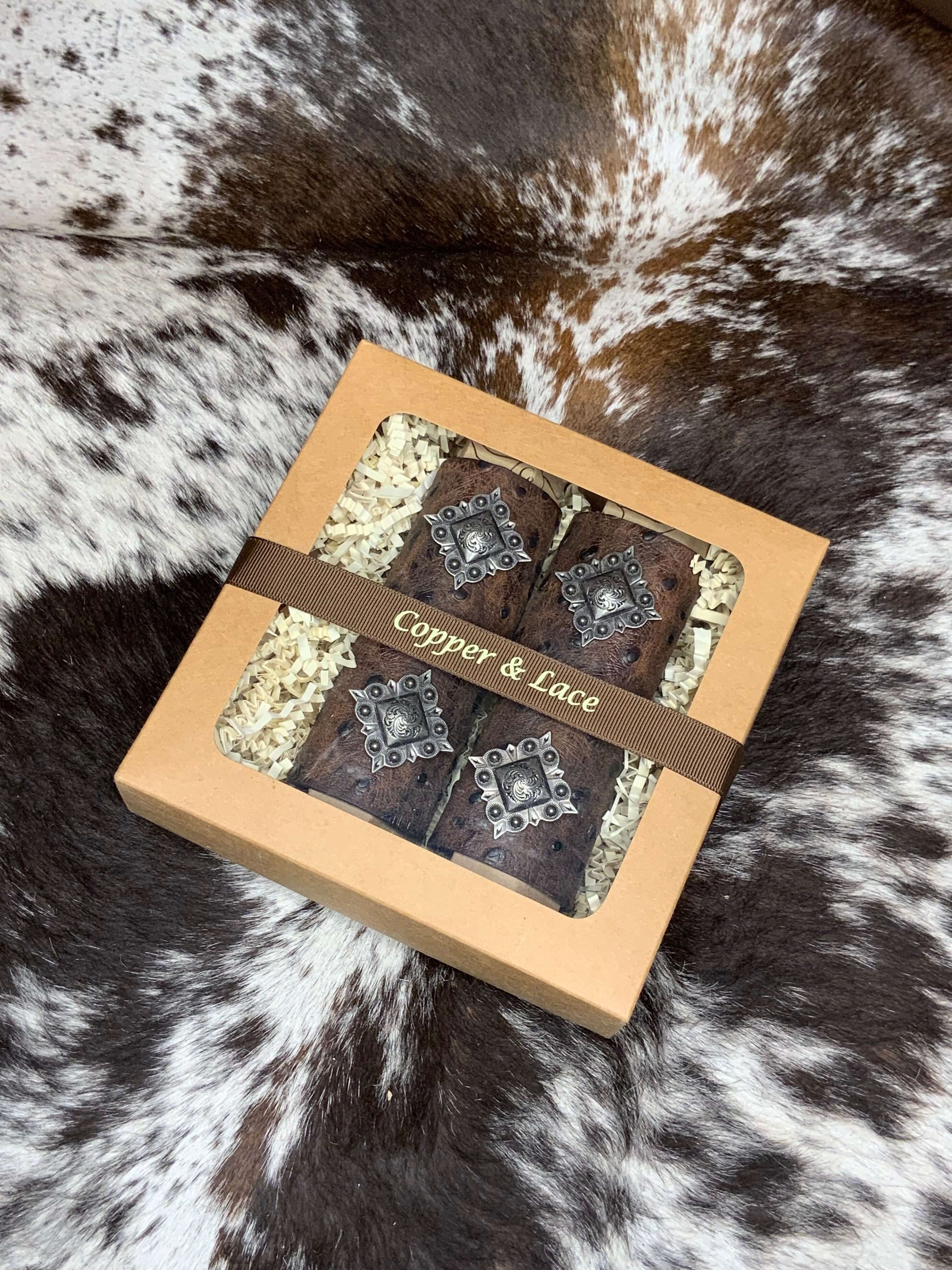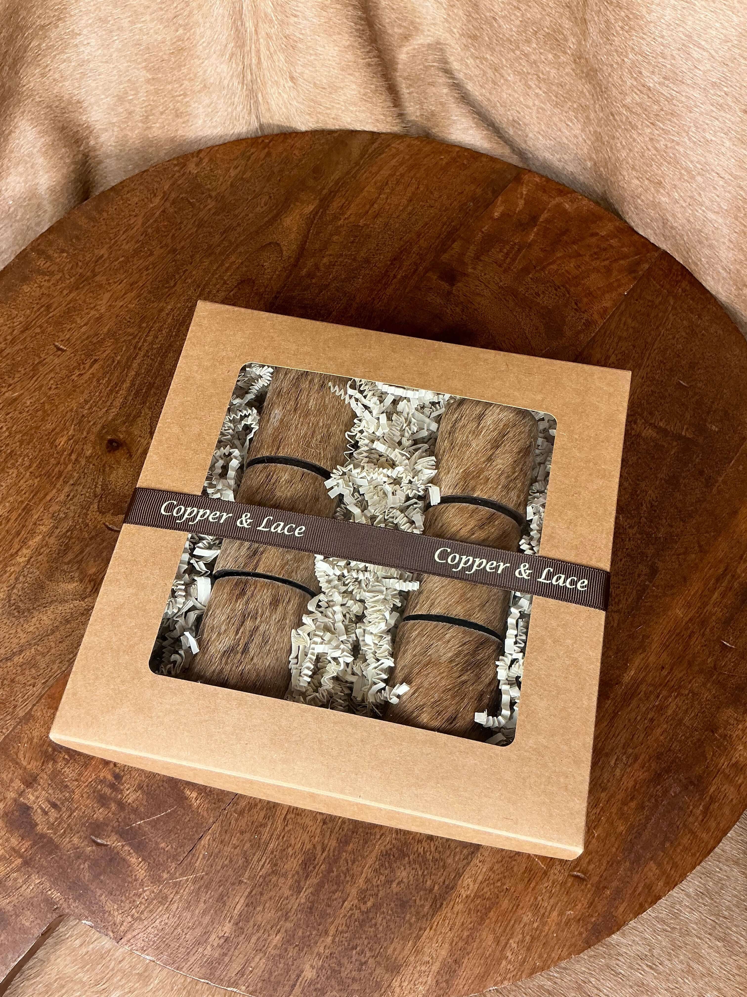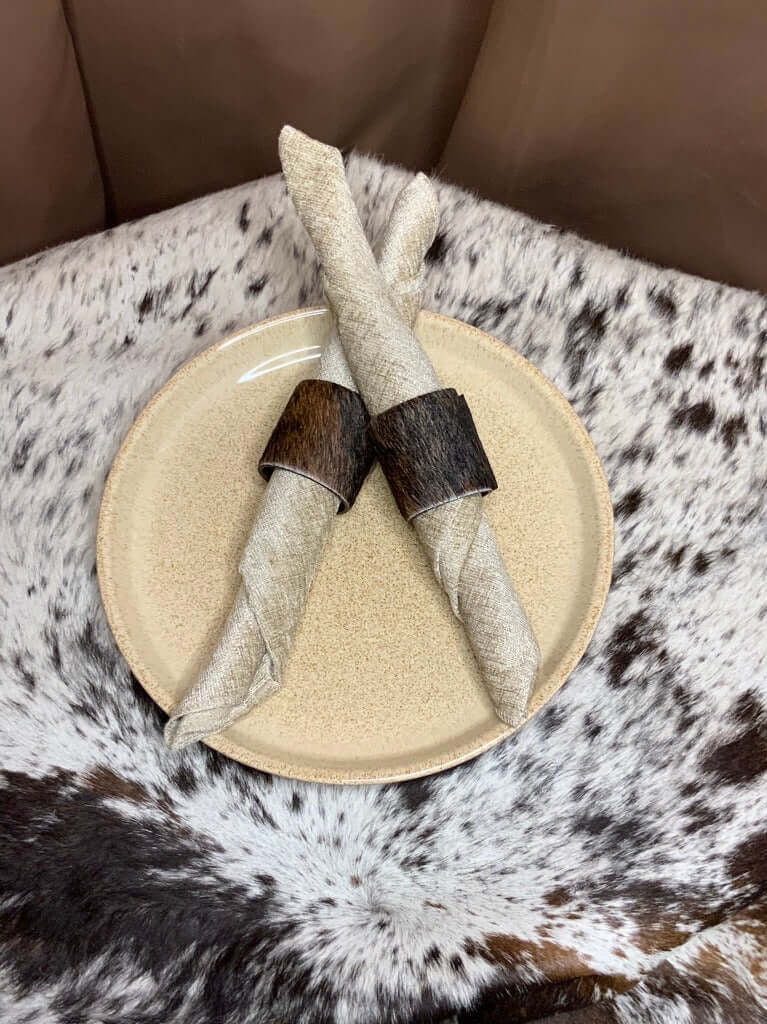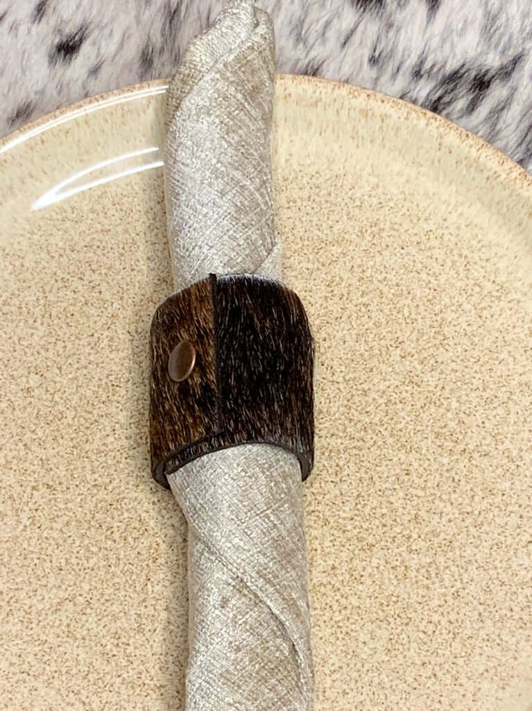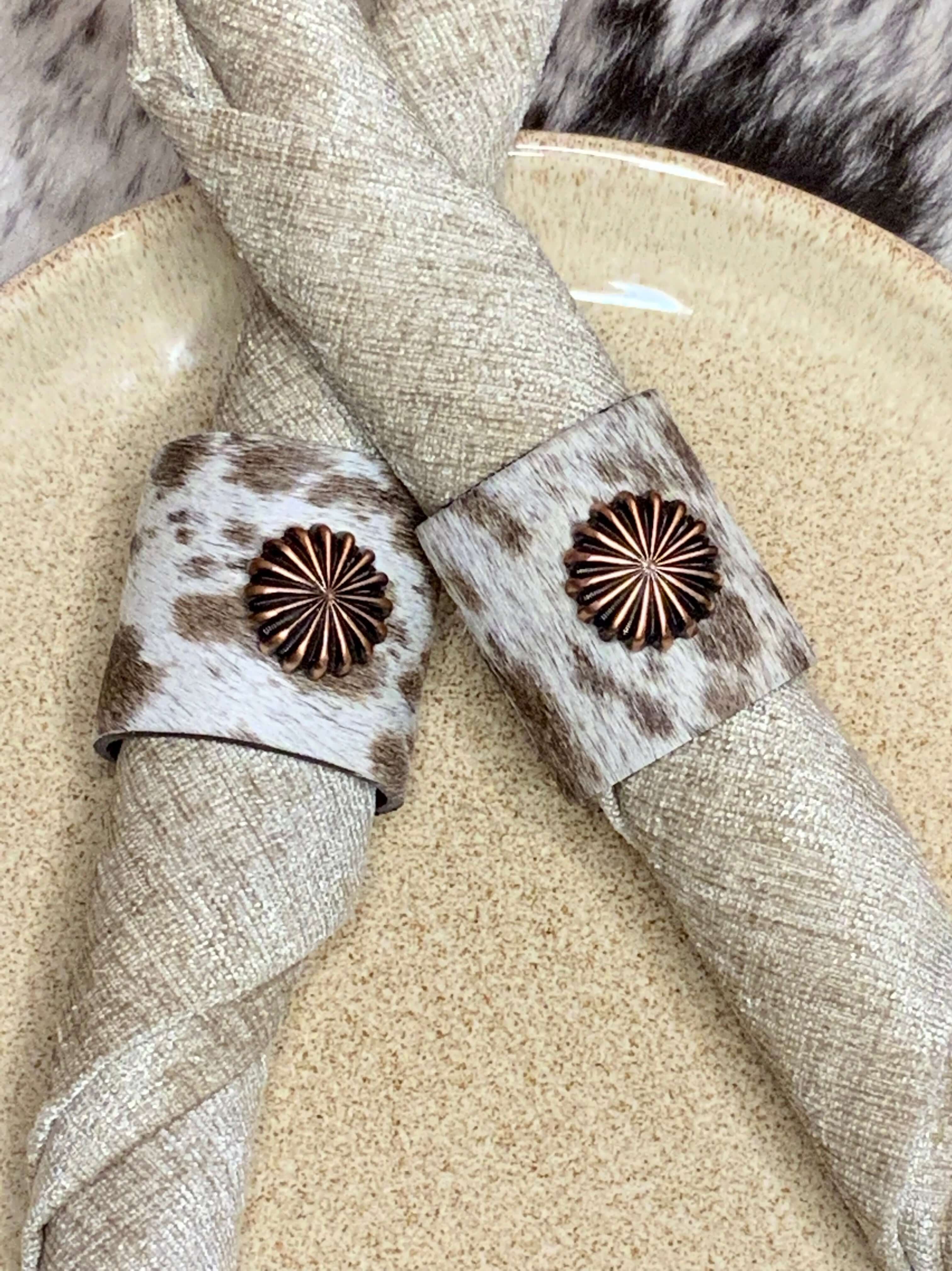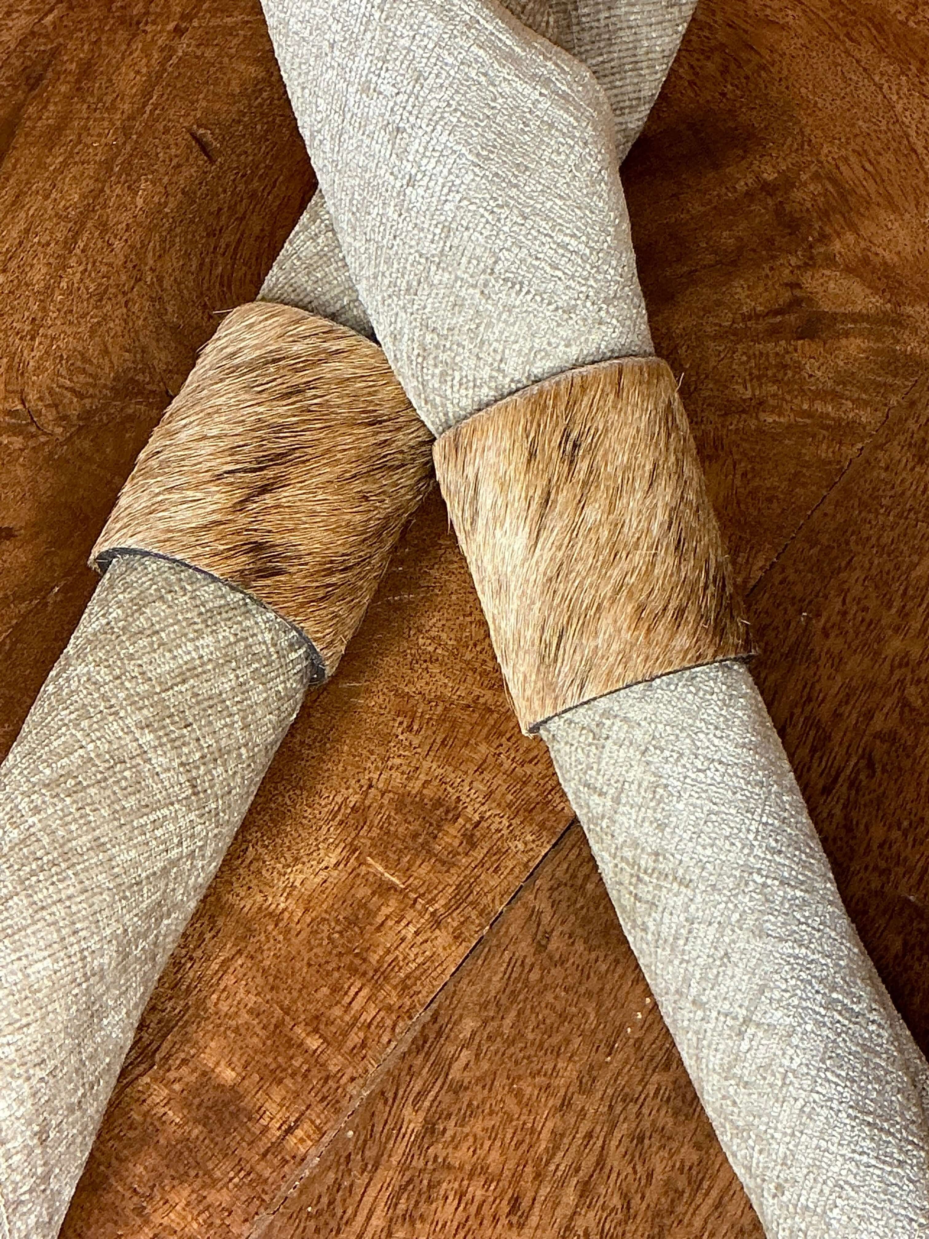 - Are these napkin rings suitable for a rustic or Western home? Yes. Our leather napkin rings are a perfect accessory to add to your dining or kitchen decor. The natural leather and handcrafted details make them a beautiful and subtle way to incorporate Western and rustic style into your home.