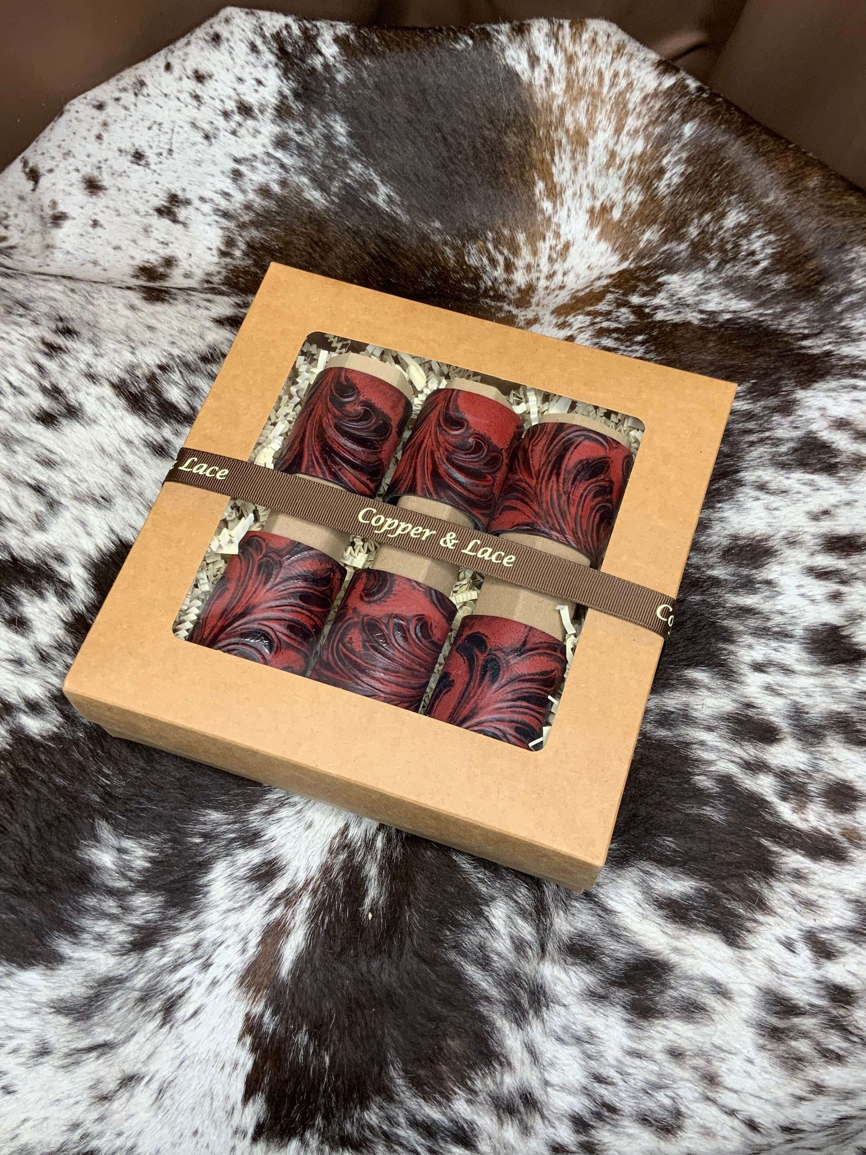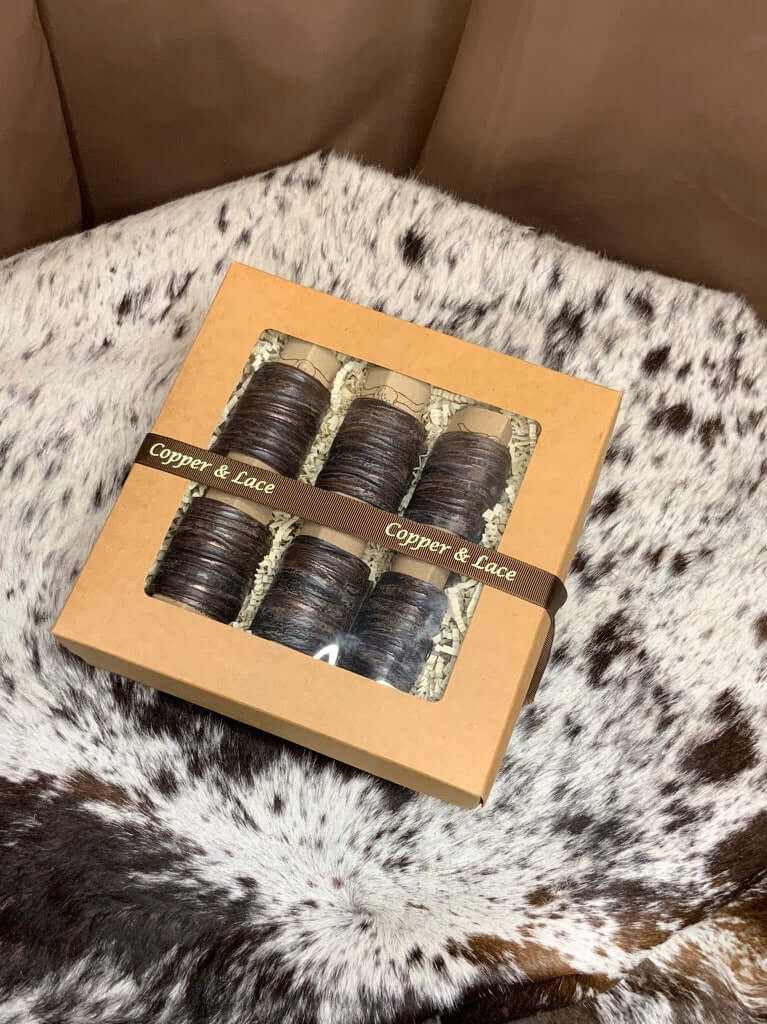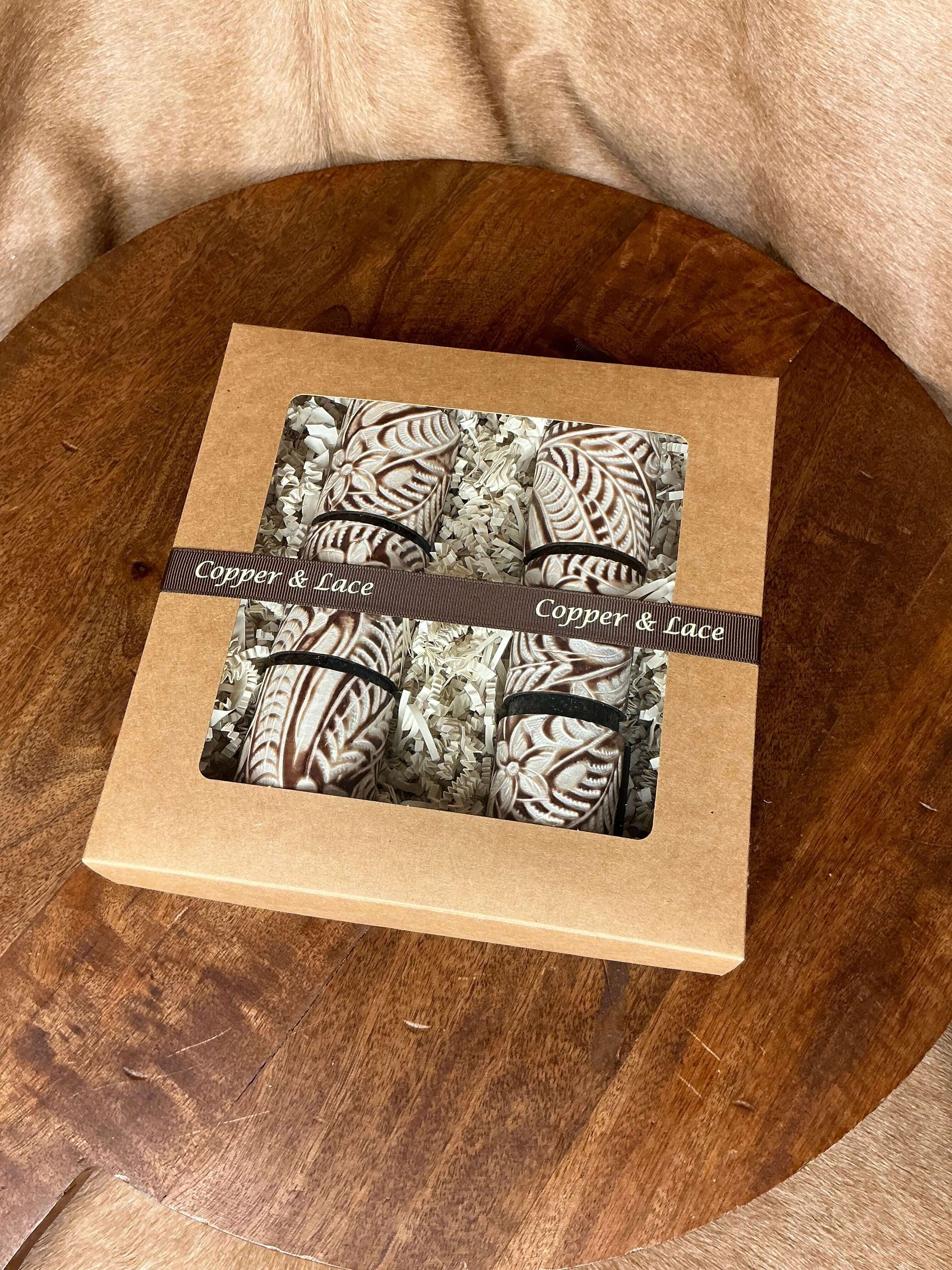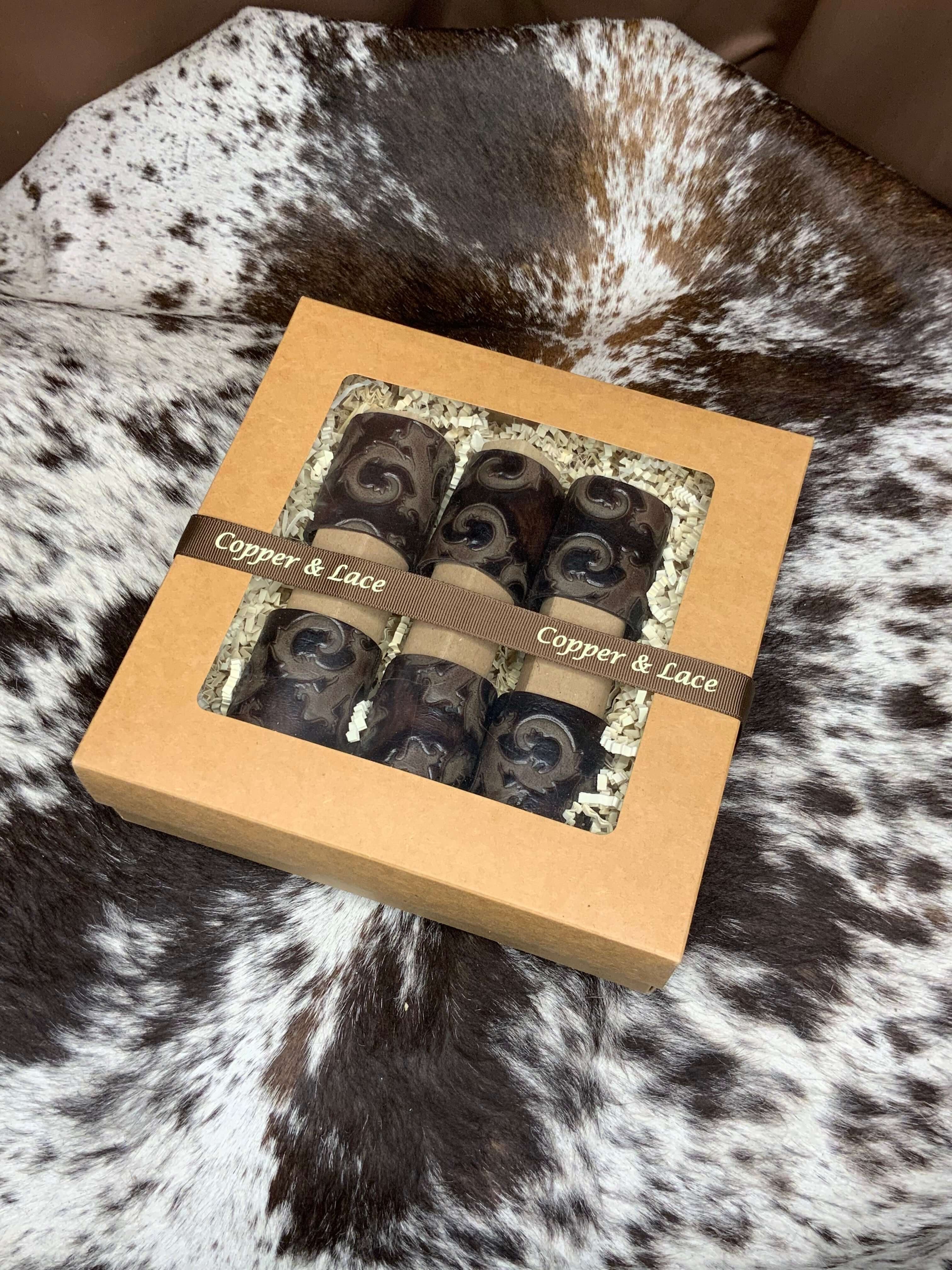 - Who handcrafts these leather napkin rings? All of our handcrafted leather napkin rings are personally designed and made by our owner, Charlyn Pacheco. Each piece is created with a focus on quality and a rustic, Western aesthetic, ensuring you get a unique and beautiful addition to your table.