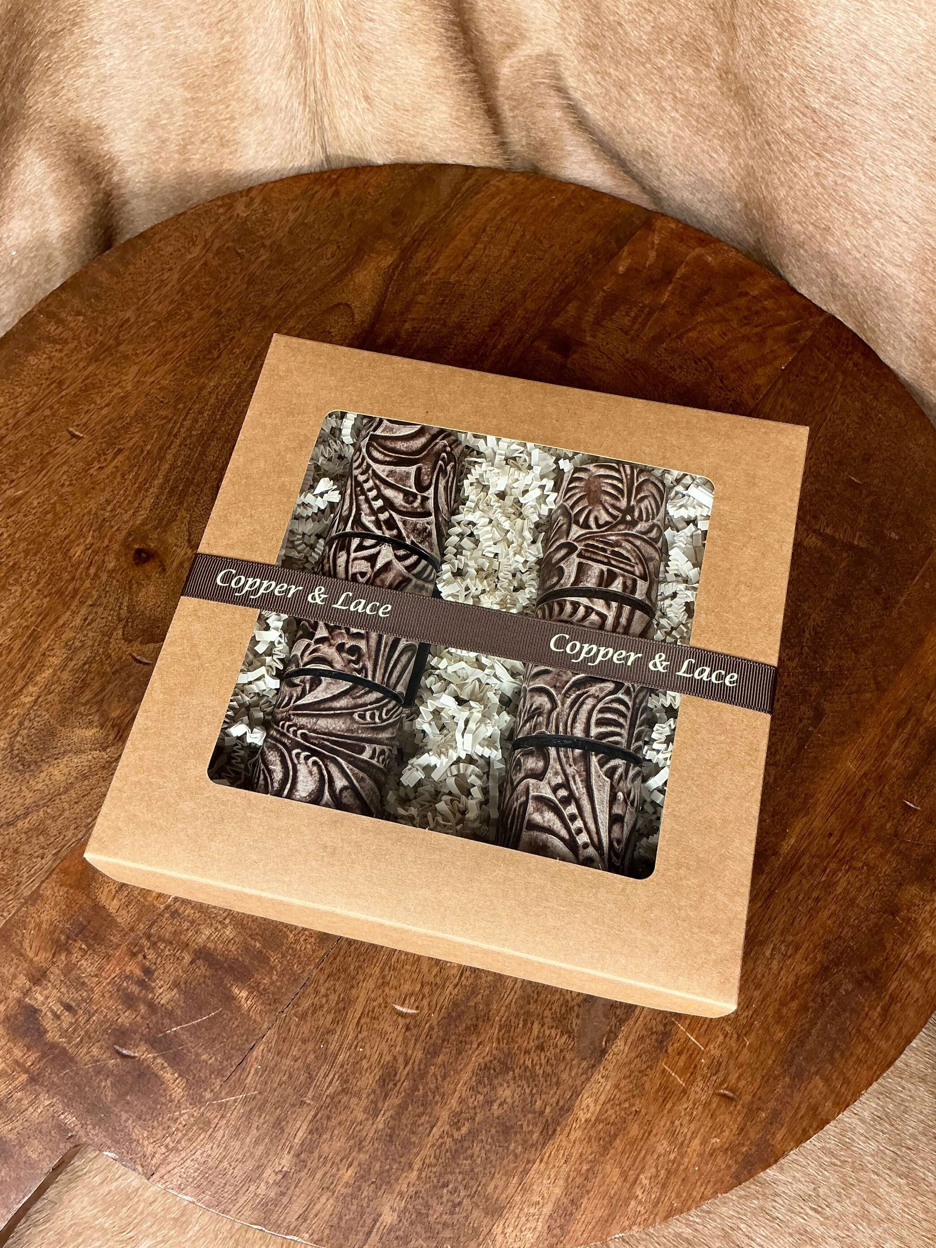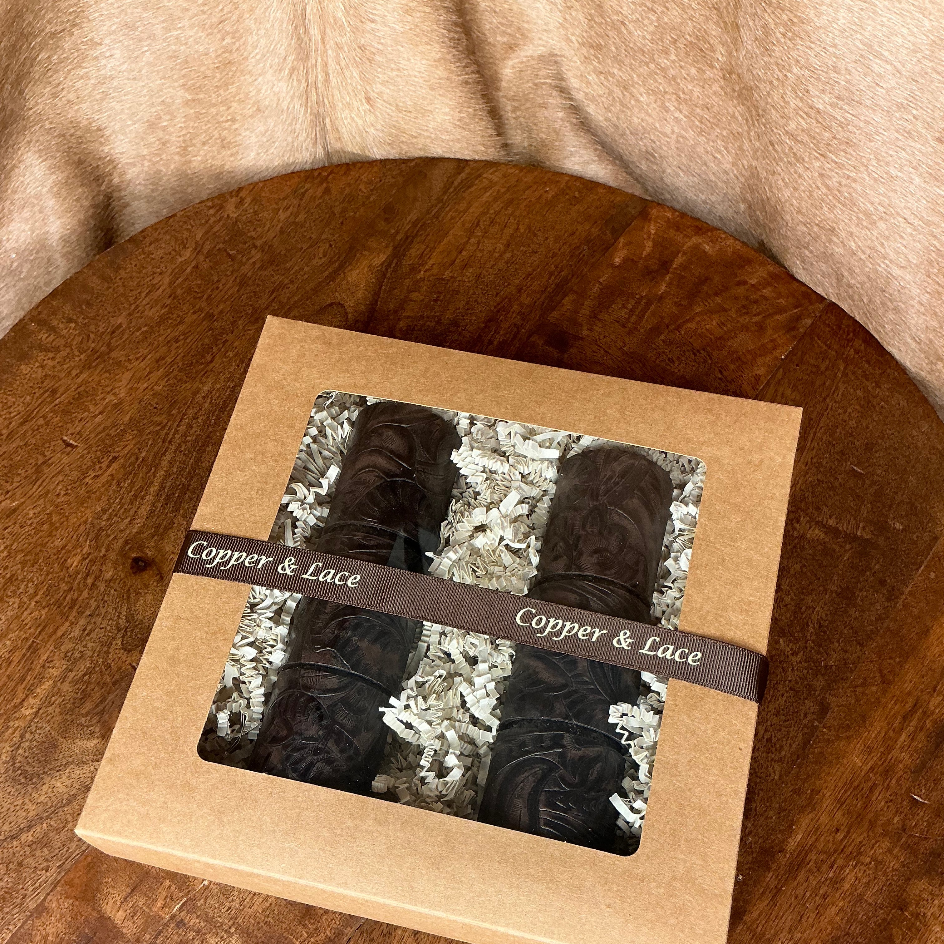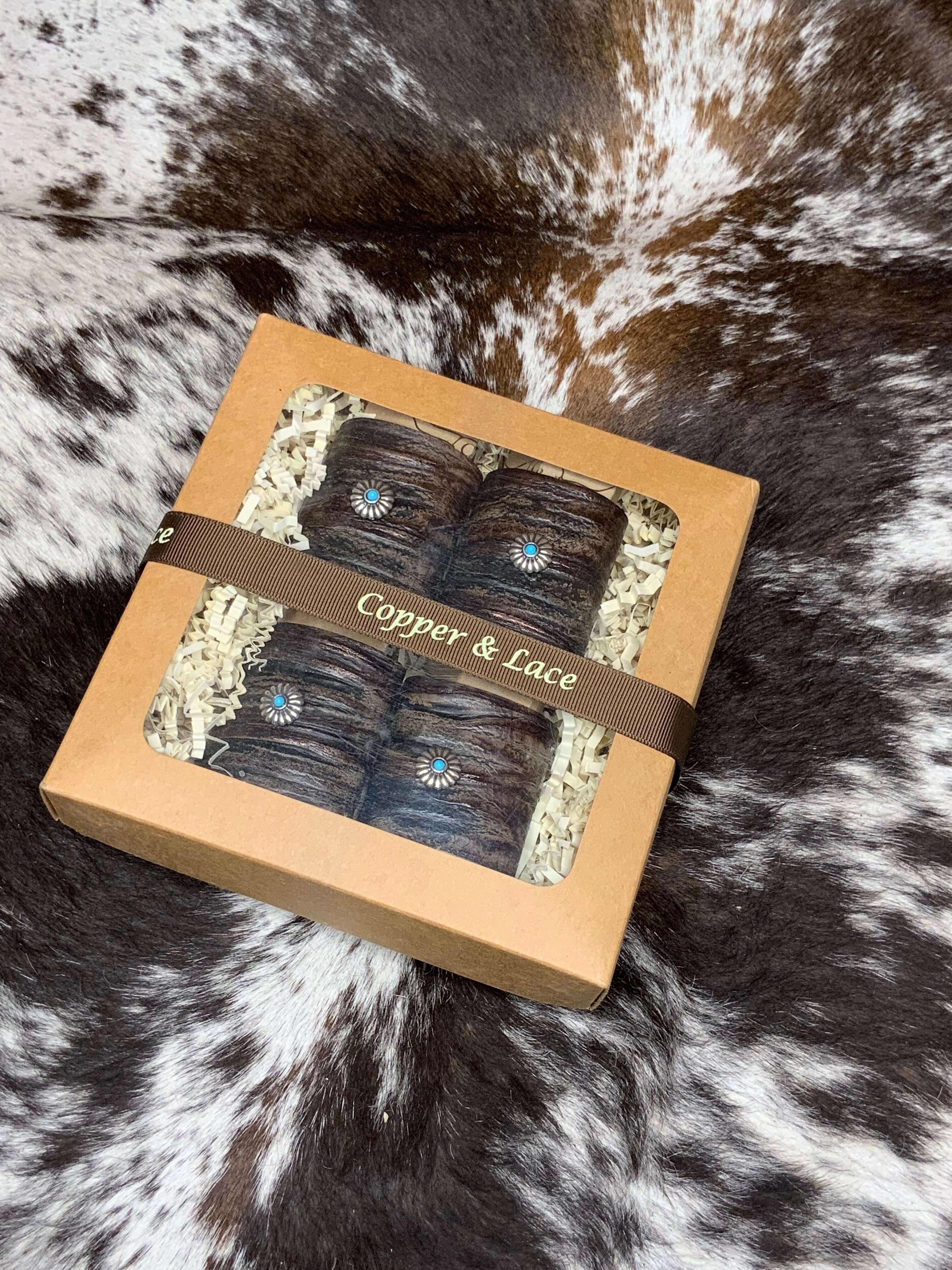 - Who handcrafts these leather napkin rings? All of our handcrafted leather napkin rings are personally designed and made by our owner, Charlyn Pacheco. Each piece is created with a focus on quality and a rustic, Western aesthetic, ensuring you get a unique and beautiful addition to your table.