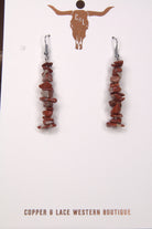 Saddle up for the Red Rock Canyon Earrings — a handcrafted pair inspired by the rugged beauty of California’s canyon landscapes. Created by Copper & Lace Western Boutique in Paso Robles, these earrings feature natural Red Jasper chip beads, each uniquely shaped and stacked along silver wire to highlight the earthy depth and variation of the stones.