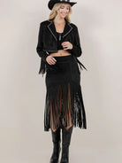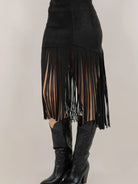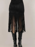Sally Black Tiered Faux Suede Fringe Midi Skirt
