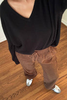 The Hills lightweight, wide-leg corduroy pants with a comfy cord drawstring waistband for a custom fit. The soft, stretchy fabric moves with you from errands to evenings—effortless, flattering, and easy to love.