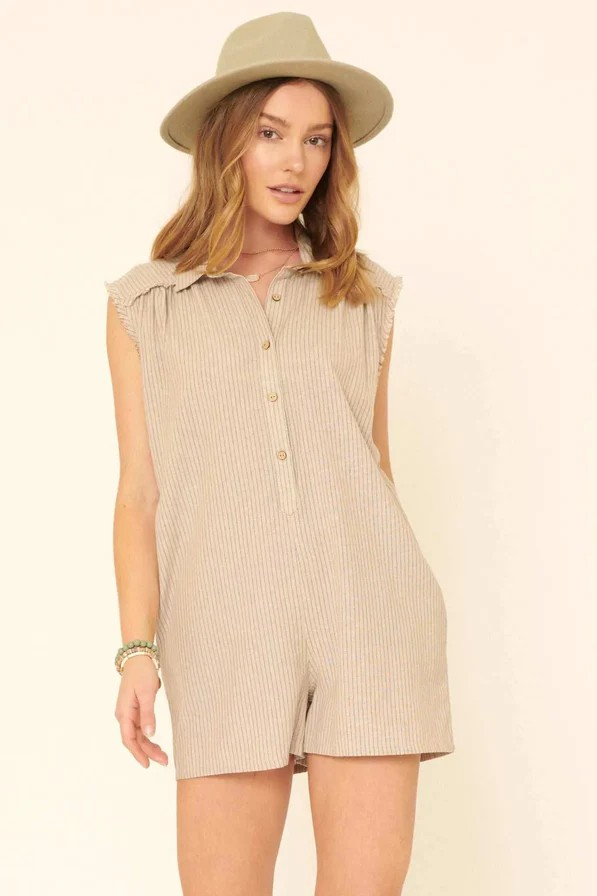 This romper is a statement piece for rebels with a bold sense of style. Slip it on and let the distressed seams and relaxed fit show off your rebellious attitude! Pair this romper with one of our wide belts and a pair of boots and hit the road to any concert around.