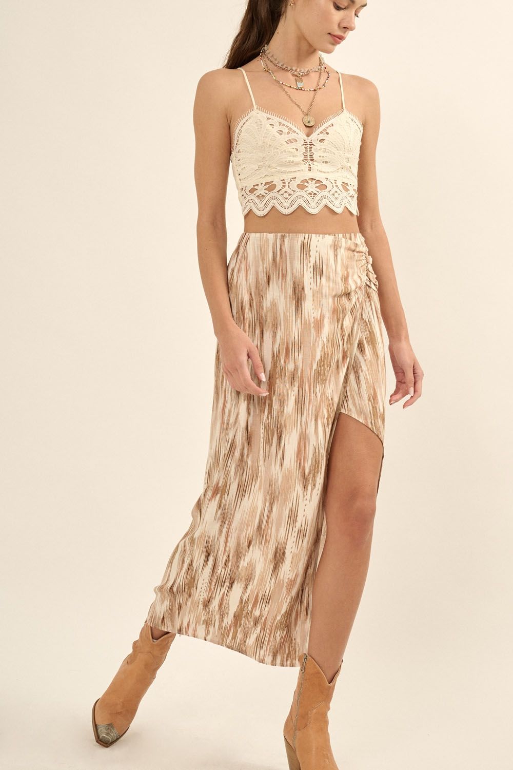Experience the ultimate comfort while looking effortlessly stylish! Feel the freedom as you move with ease in this gorgeous ankle-length maxi skirt. The relaxed fit, wrapped design, and ruched detail at the hip create an edgy yet chic look. Don't worry about last-minute plans, this skirt is versatile enough to wear with a tank, jean jacket, and boots. Take on any event with confidence and style!