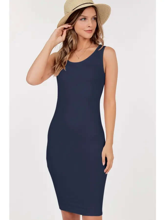 Sleeveless tank body con dress - These dresses are great for the end of summer and then transition into fall by simply throwing on a sweater or long sleeve button up shirt over them as the days cool off.  You will get so much use from this little dress you will be surprised.