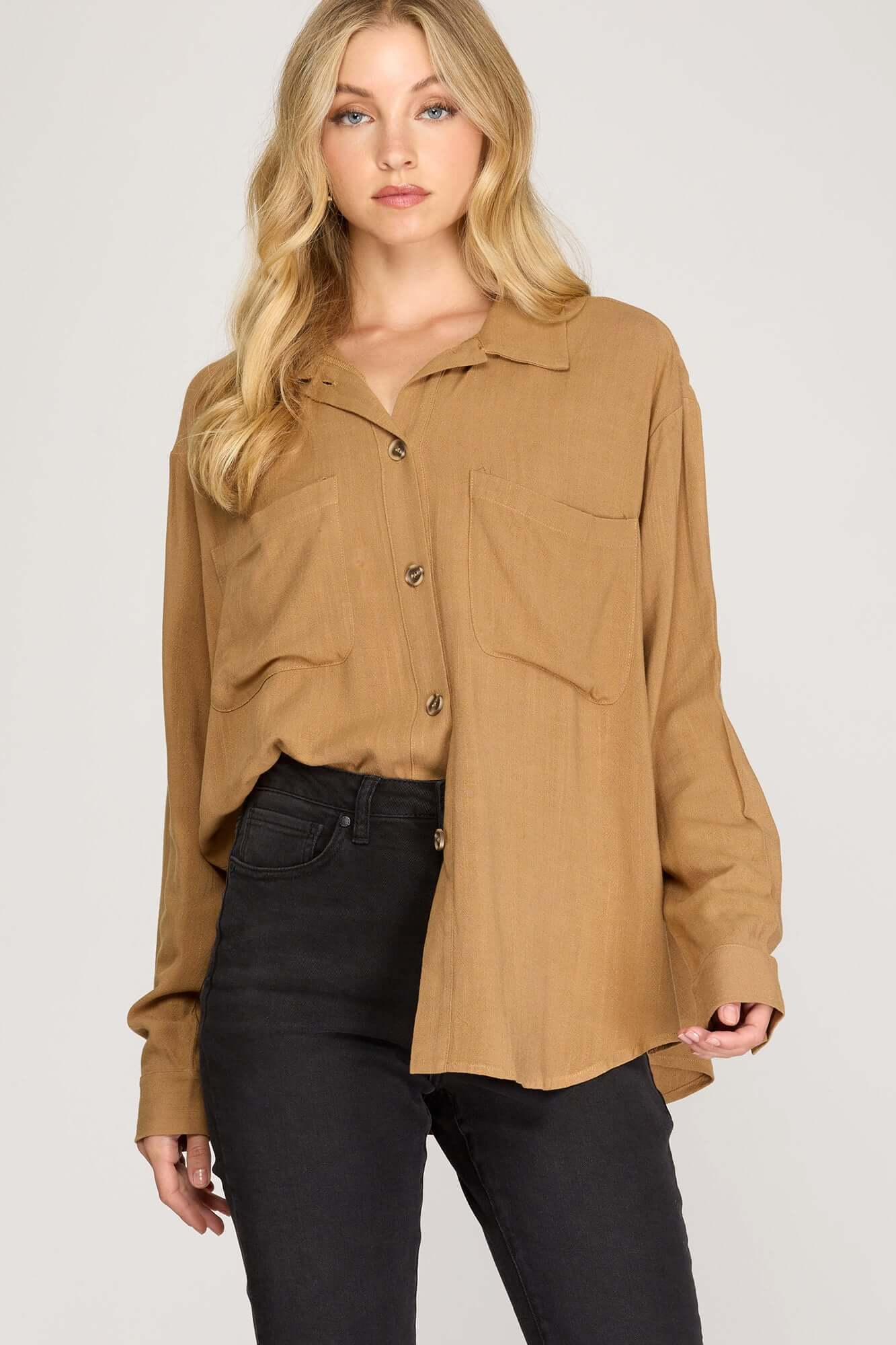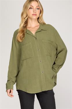 LONG SLEEVE WOVEN BUTTON DOWN SHIRT