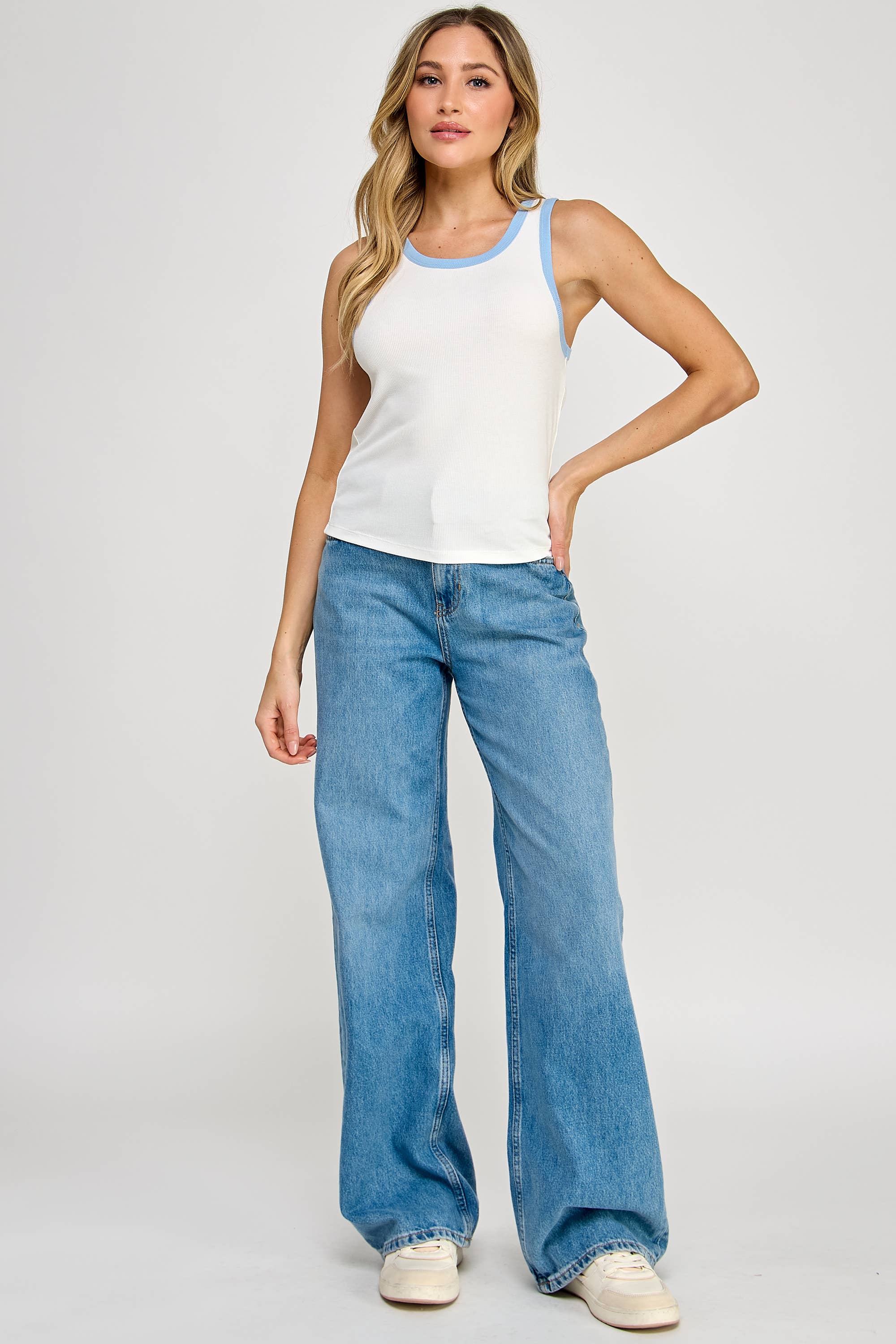Sabrina Contrast Tank in White/Light Blue