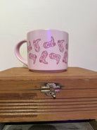 The Western Icons Ceramic Mug - Pink adds a touch of southwestern style to your daily routine. Featuring a playful pattern of classic western icons like cowgirl boots, hats, and lassos in a charming pink hue, this mug is perfect for sipping your favorite beverage while embracing your love for the wild west. Whether you're enjoying your morning coffee, tea, or just relaxing with a warm drink, this mug is a fun and cozy companion.