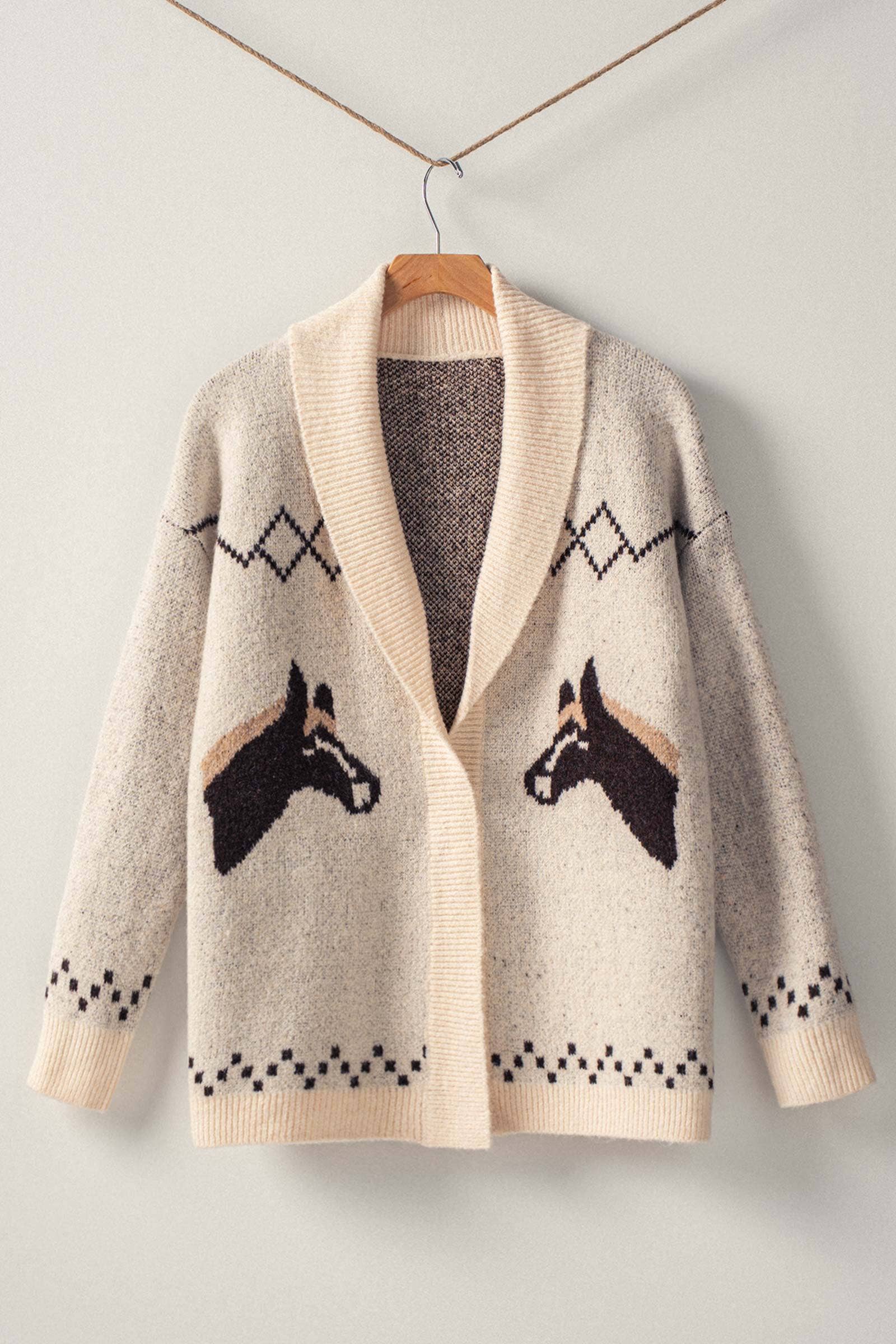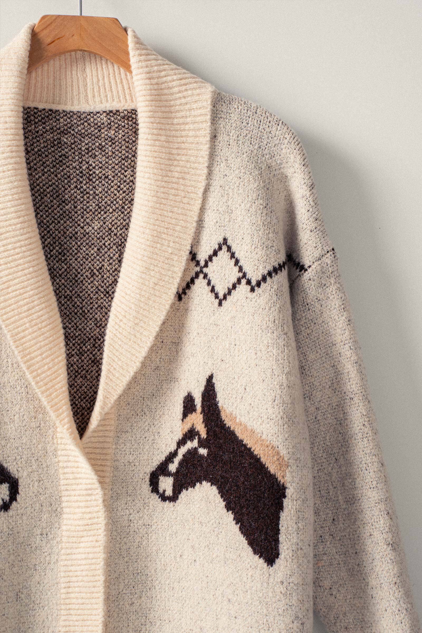 Classic Shawl Cardigan with Horse Motif Knit