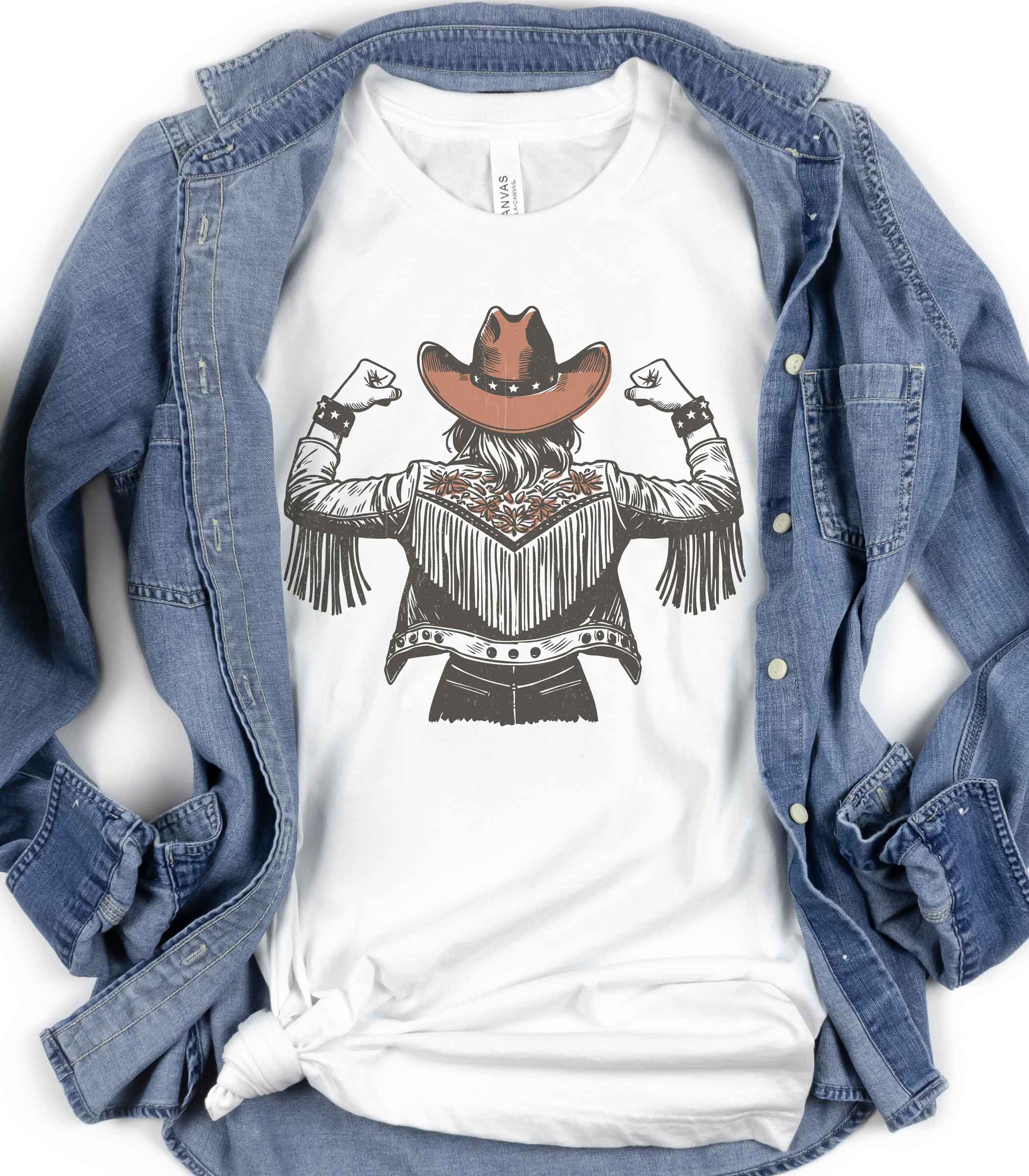 This tee shows off a fierce cowgirl vibe from behind. With its bold graphic, it’s guaranteed to turn heads wherever you go. Crafted using DTF printing, it feels incredibly soft and pairs effortlessly with any outfit in your wardrobe.