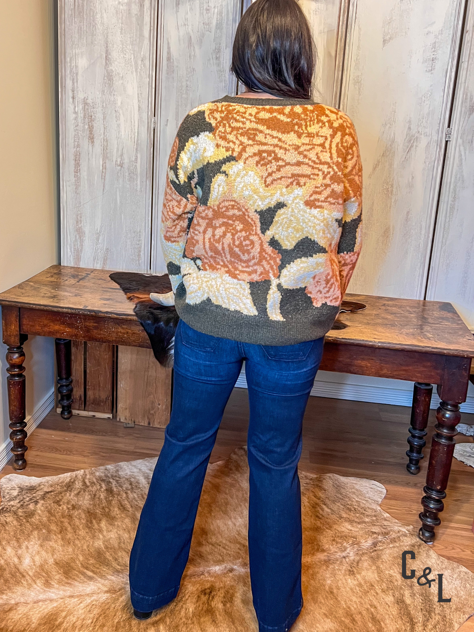 Harvest Bloom Sparkle Floral Sweater – Dark Brown