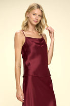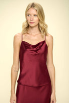Slip into pure elegance with this Made in USA satin tank top that feels as good as it looks. Crafted from a luxurious blend of 97% polyester and 3% spandex, this silky number drapes beautifully while offering just enough stretch for all-day comfort. Available in a rainbow of colors to match your vibe, it's the versatile piece every wardrobe needs. Our model Liaision (5'10", 26" waist, 34B bust) rocks the Small—use her as your style guide to find your perfect fit!