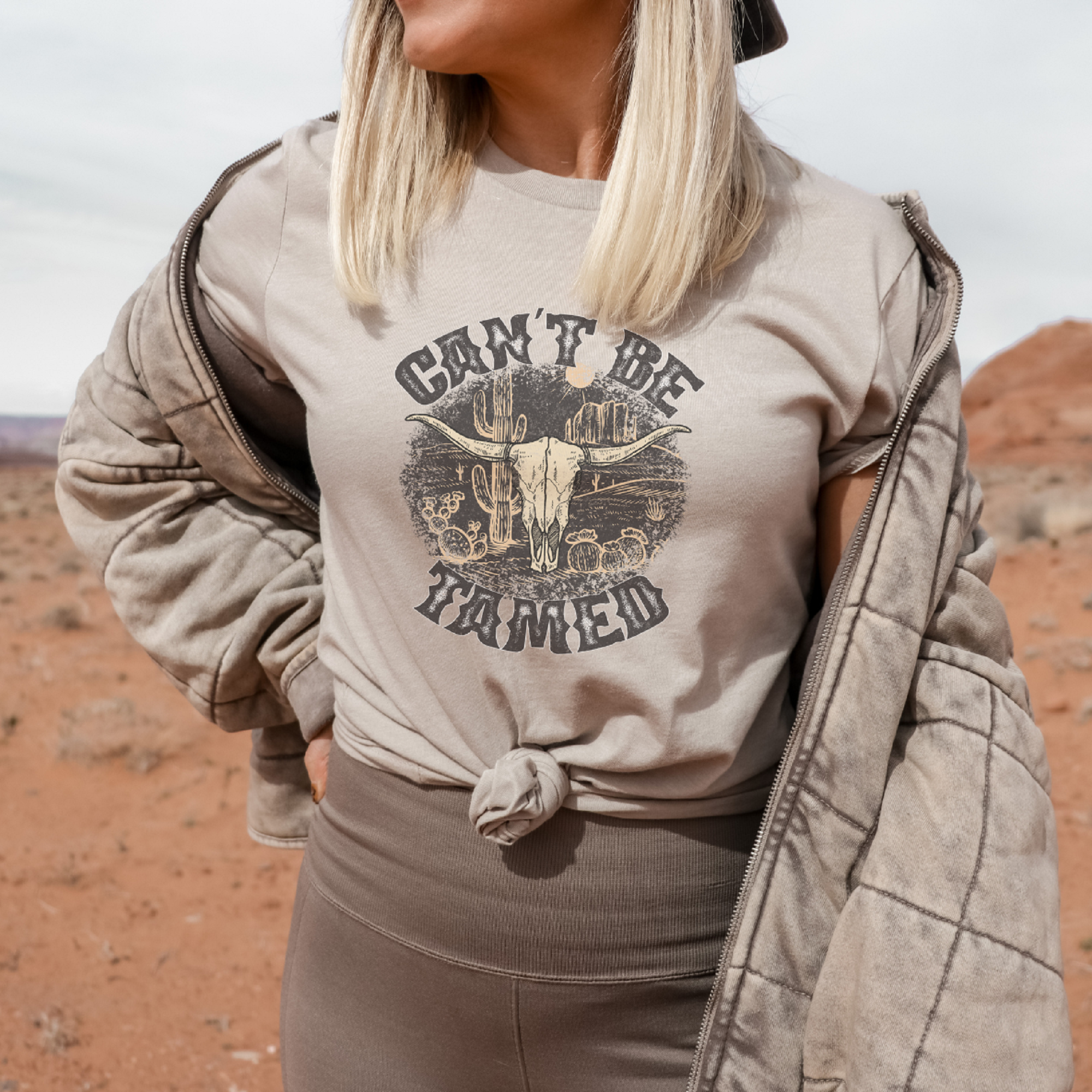 Our Western Can't Be Tamed Skull Tee is the perfect tee for all you wild and crazy country girls out there that can't be tamed! Perfect to layer under your favorite denim jacket or cardigan! So soft and makes a great friend gift any time of the year! Pair perfectly with shorts, jeans and your favorite pair of boots or sandals!