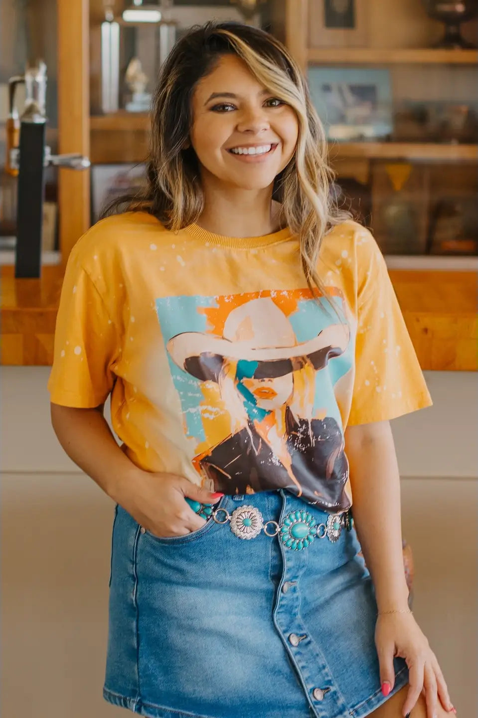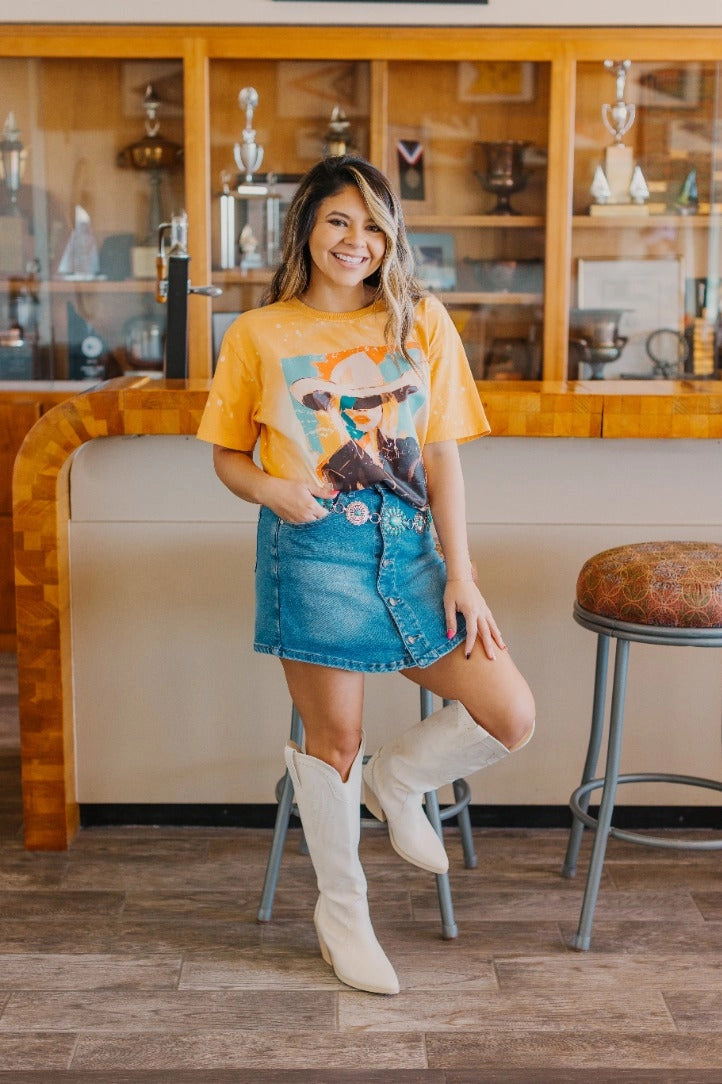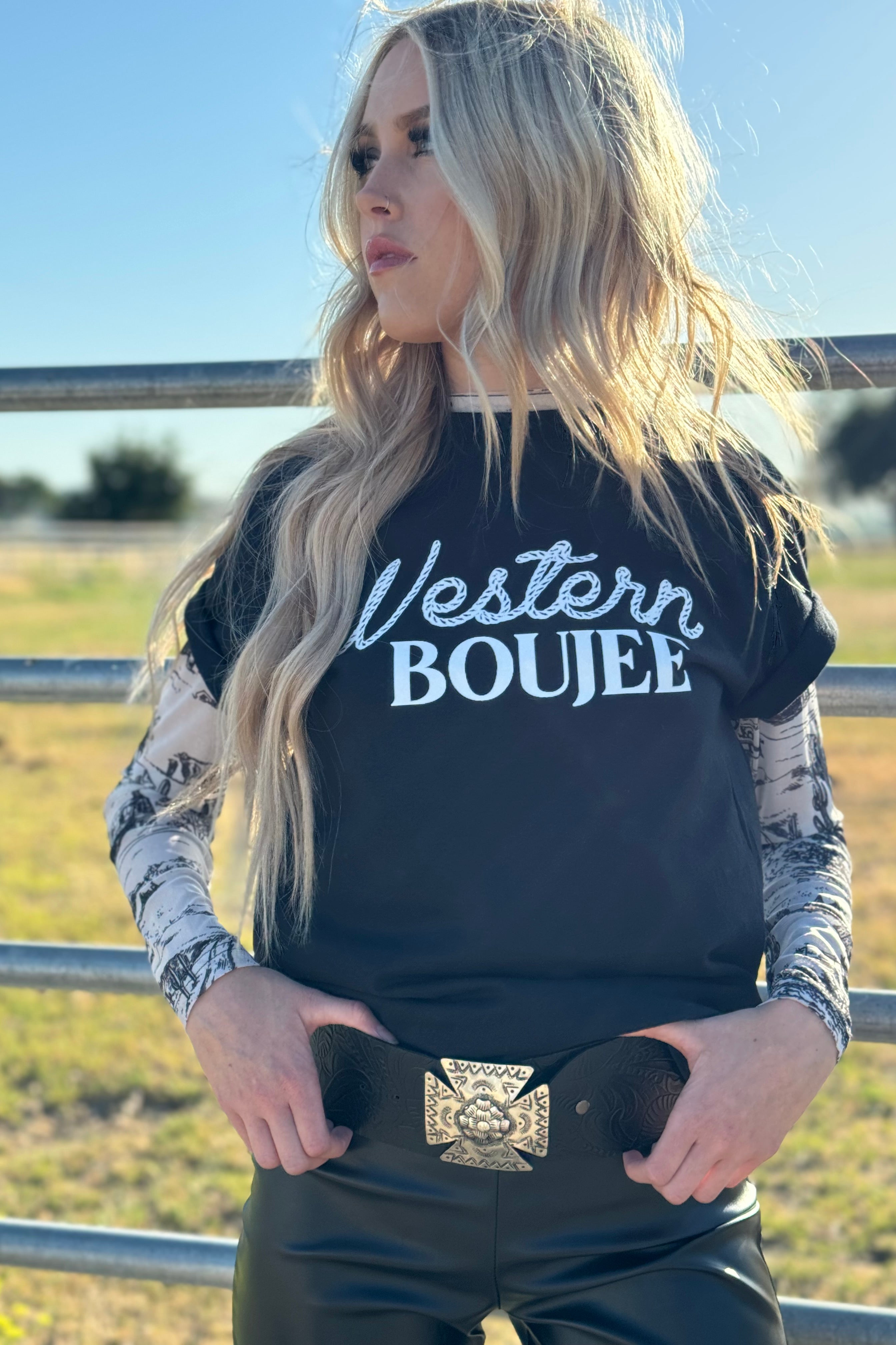 - Are your tops suitable for a Western-inspired style? Yes. We curate our collection with a classic Western aesthetic in mind. Many of our tops feature rustic designs, vintage-inspired graphics, or classic silhouettes that pair perfectly with our denim and leather accessories. They are a great way to show off your cowgirl style.